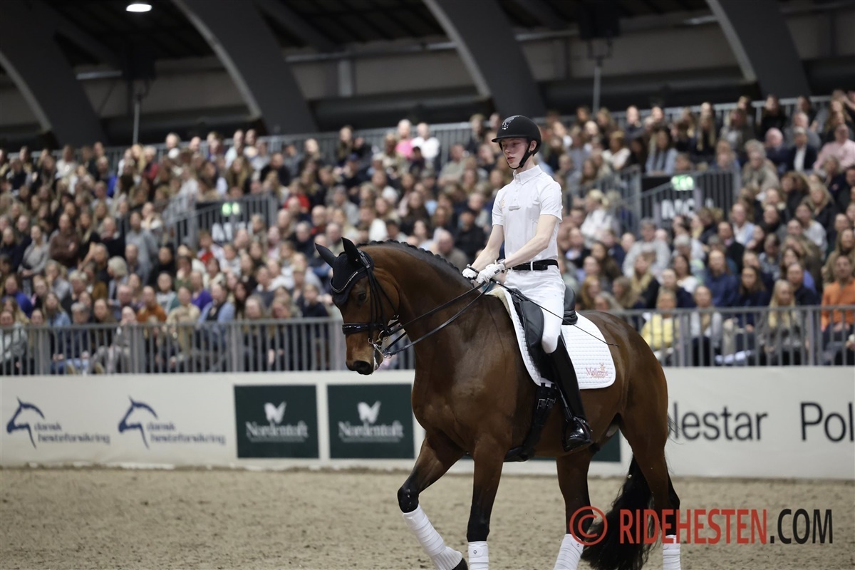 Her var der fokus på fremaddrift og den korrekte uddannelse af unghestene. Dennis Fikser bad de to ryttere om at lade hestene bevæge sig naturligt, så de fik en god og tryg oplevelse i den fyldte arena: