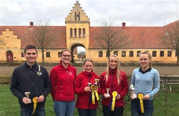 Til sidst var det tid til de lidt mere erfarne heste. Her fik Dennis og Susanne besøg af Dennis beriderelev Carl-Christian Sædder Savola med en 8-årig hest, der netop lige var begyndt at lege med de lidt mere samlende øvelser. Til at gøre ham selskab var U25-rytteren Lea Torabi, der havde taget en lidt mere erfaren hest på 11 år med på banen i dag.