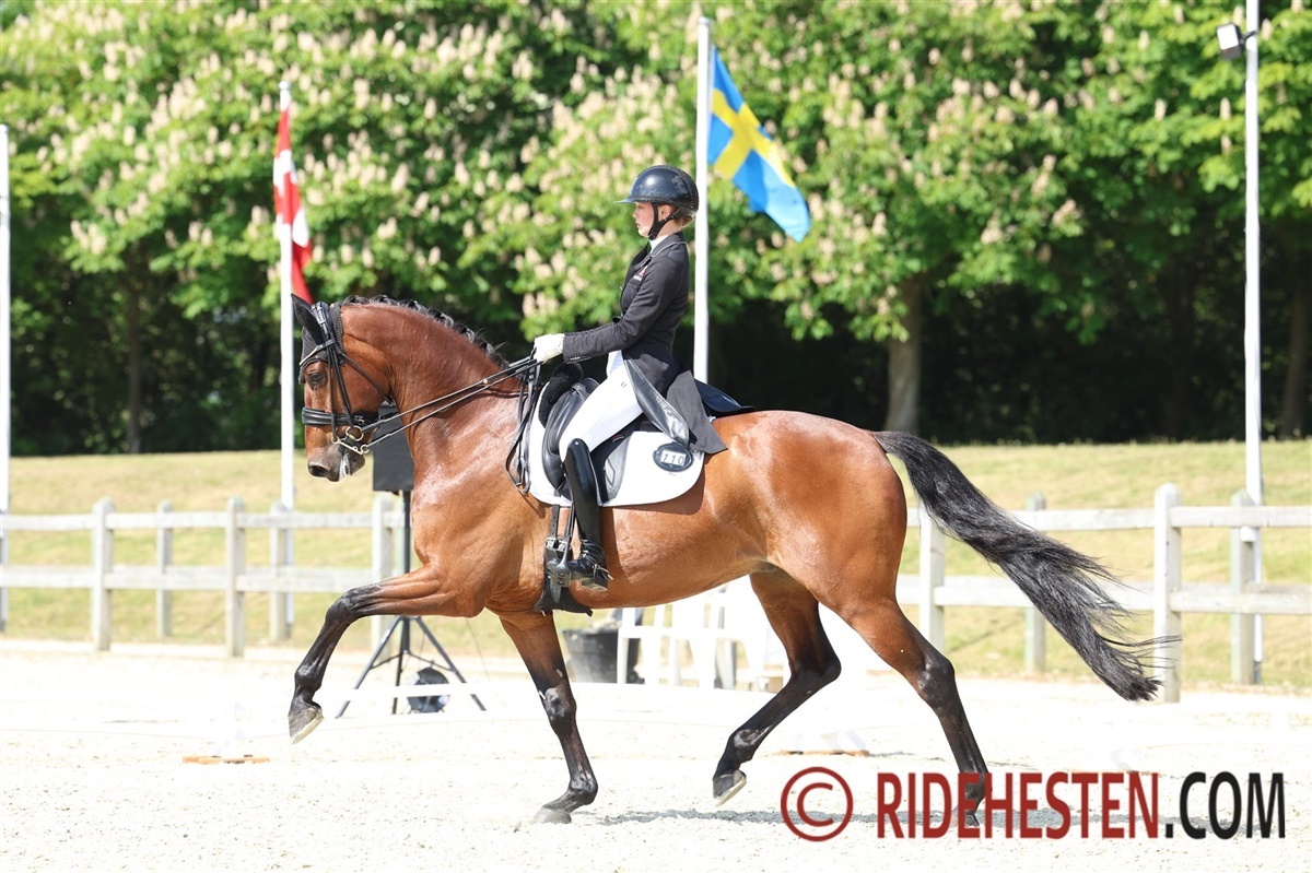 Allerede efter den indledende runde af Agria DRF-mesterskab for U25 i paradressur på Vallensbæk Rideklub, havde Nikoline Bjørkmann Holm Hansen og Poppelgårdens Da Capo e. Triple Tree's Prince Perfect/ Notre Bac (opdr. Elise Green) lagt sig behageligt i spidsen. I dag hev ekvipagen sejren i hus med en flot kür til Queen-musik, der blev belønnet med 73,584%, og et samlet resultat på 143,679%.