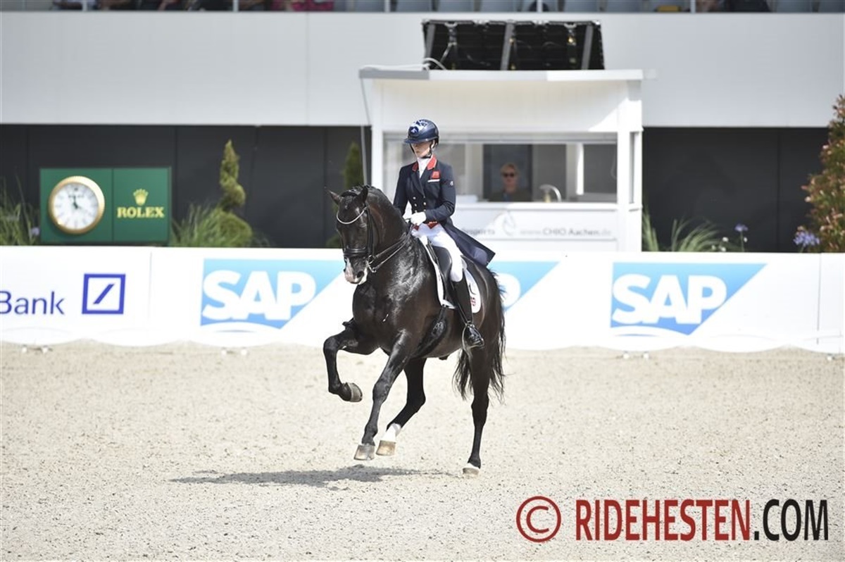 Andenpladsen i klassen gik med 75,783% til den dobbelte, individuelle VM-guldvinder, britiske Charlotte Fry, der dog var til start med hendes anden tophest, nemlig den 13-årige avlshingst Everdale e. Lord Leatherdale/ Negro. Sidst ekvipagen var til start var i den 3-stjernede Grand Prix-tur ifm. UVM i dressur i hollandske Ermelo. Her vandt de både Grand Prix og Grand Prix kür. Ekvipagen var også på det bronzevindende britiske hold ved OL i Tokyo i 2021. Ingen tvivl om, at Everdale er en helt fantastisk hest, men i dag blev han noget høj i nakken indimellem, og der var et par misforståelser blandt andet til sidst, hvor han var klar til at lave parade alt for tidligt og dermed stoppede lidt ind i piaffen på midterlinjen.