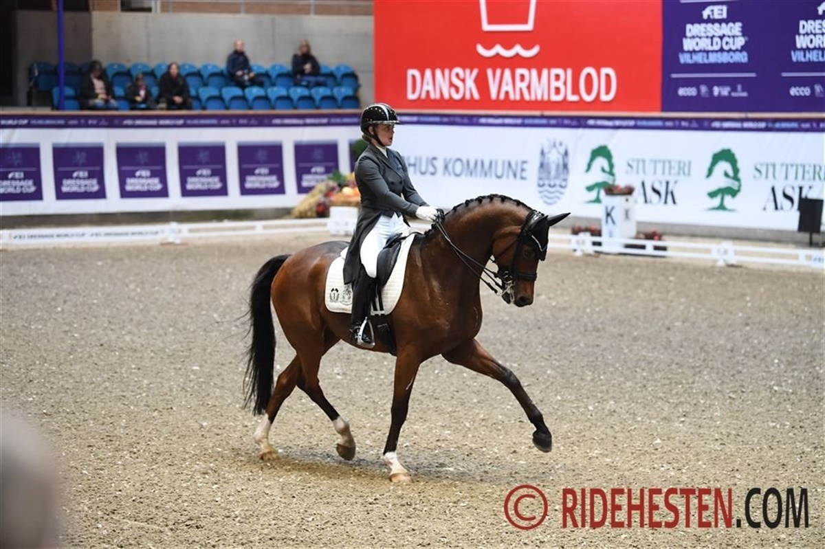 Anna Zibrandtsen debuterede i dag med den 11-årige vallak Quel Filou e. Quaterback/ Stedinger i World Cup-sammenhæng. Anna, der til dagligt træner hos Cathrine Laudrup-Dufour, debuterede først på året den tidligere UVM-bronzevinder på Grand Prix-niveau, og parret har siden da været i en rivende udvikling. Det er blevet til både start ved DM i dressur, i Falsterbo, 3-stjernet dressur ifm. World Cup-kvalifikationen på Vilhelmsborg i oktober og senest start ved det 3-stjernede dressurstævne på Blue Hors i november med en anden- og tredjeplads i henholdsvis Grand Prix kür og Grand Prix til følge.