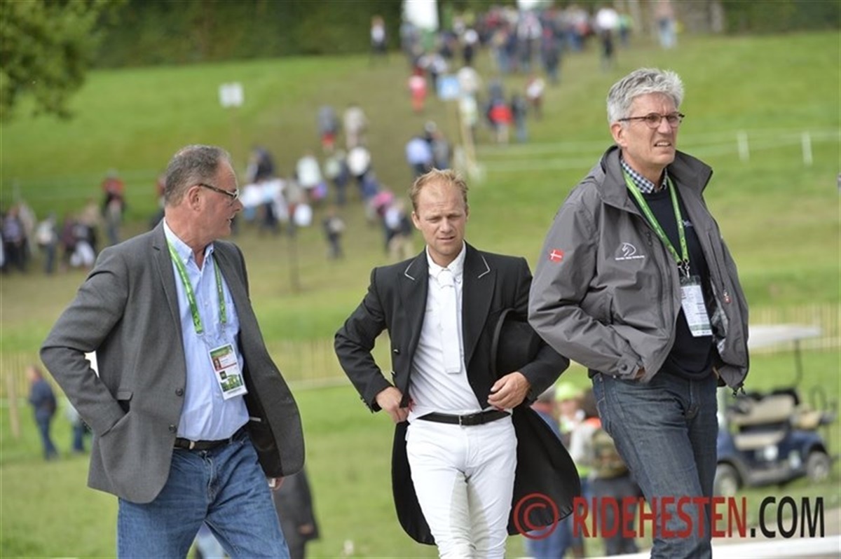 Også den smukke, kuperede militarybane ved statsstutteriet Le Pin er mærket af regnen de sneste dage. Parkeringspladserne sejler og der er mudder, mudder og pløre overalt på den ellers meget smukke og kuperede terrænbane. Lørdag venter der rytterne en hård dag i terrænet. Indtil videre er banens længde på godt 6 km uændret og det kuperede terræn spås at trække energi ud af militaryhestene i terrænspringningen lørdag. Først skal ryttere og heste dog gennem dressur konkurrencerne, og her har verdensranglistens nummer et Wiliam Fox-Pitt og Chilli Morning lagt sig komfertabelt i spidsen med et ridt til 75%, hvilket giver ham 37,5 strafpoints inden terrænspringningen. Han henviste dermed den tyske verdensmester Michael Jung og Fischer Rocana til andenpladsen - Jung har 40,7 strafpoints på kontoen. Det blev også tysk på tredjepladsen, hvor Ingrid Klimke og FRH Escada JS gik til 41,2 strafpoints. Det betyder, at Tyskland fører holdkonkurrencen foran New Zealand og England, men meget kan ske i dag, hvor den anden halvdel af rytterne rider dressur.