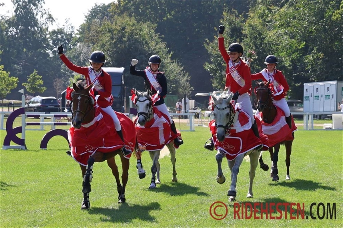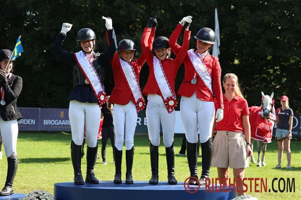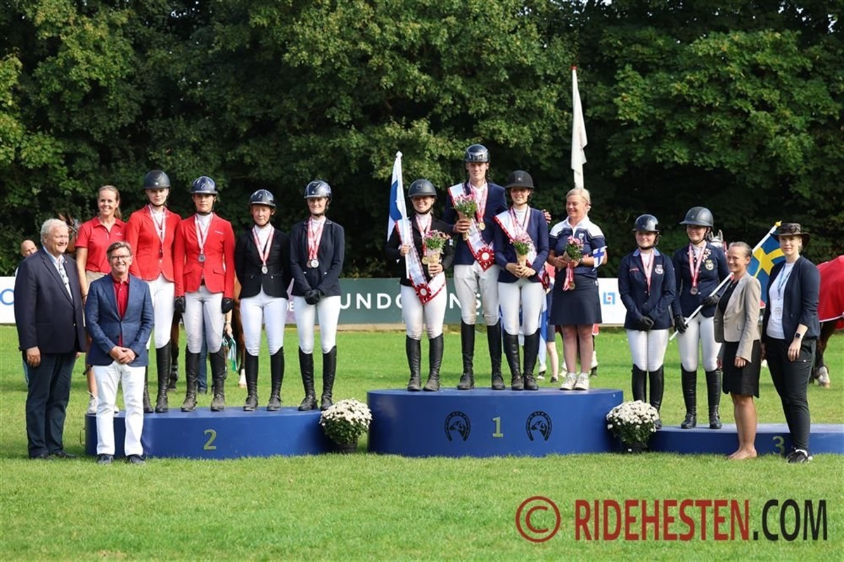 Også hos de mindste var der dansk succes, hvor der blev vundet hele tre danske medaljer i ponyernes mesterskab. Det danske hold bestående af Maja Venø og Rolsteds Viola, Clara Hørby Schow og Hesteklewa Be My Best Smokey samt søskendeparret Rebecca Holm Nielsen og AC-Star Quickie af Engvang og Thilde Holm Nielsen og Karlshøjgaard's Monique, og de var det bedste af de fire hold, hvor der, foruden de svenske (sølv) og norske (bronze) rivaler, som noget særligt var et hold fra Estland med. Det betød, at de danske ponyryttere fik hængt guldmedaljen om halsen. To af de danske piger skulle dog hurtigt på podiet igen, for Clara Hørby Schow vandt individuelt guld, mens Thilde Holm Nielsen tog sølvmedaljen.