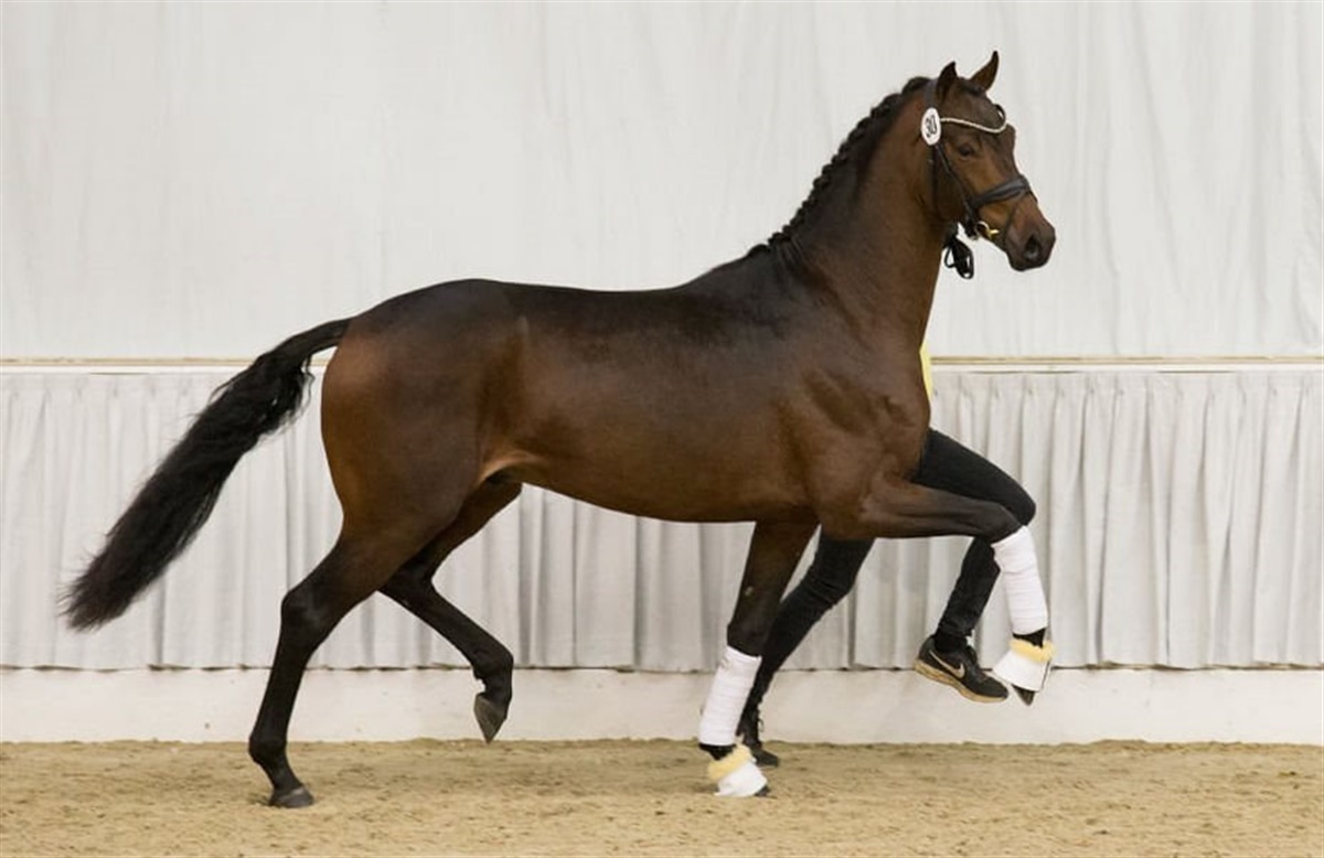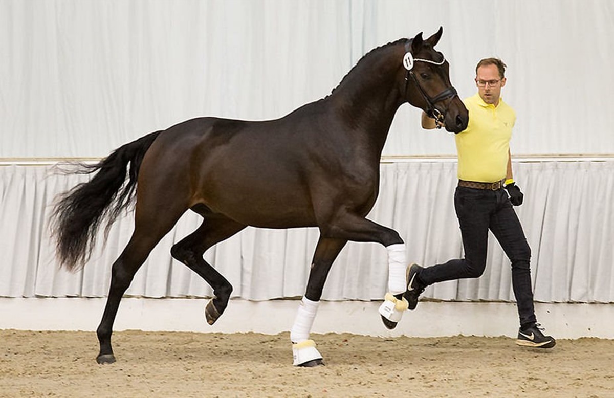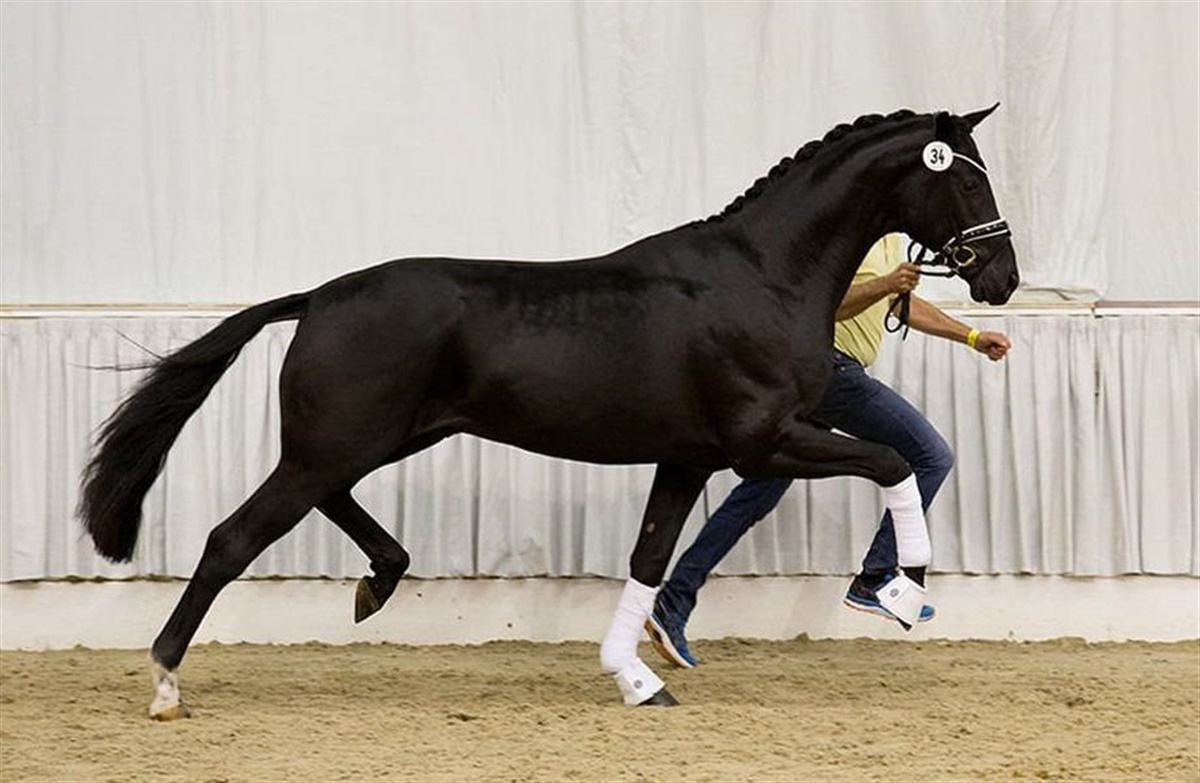Ligeledes indkøbt som føl og opvokset i Danmark er unghingsten fra Helgstrand Dressage, kat.nr. 34 e. Springbank II/ Fürst Romancier/ Desperados.