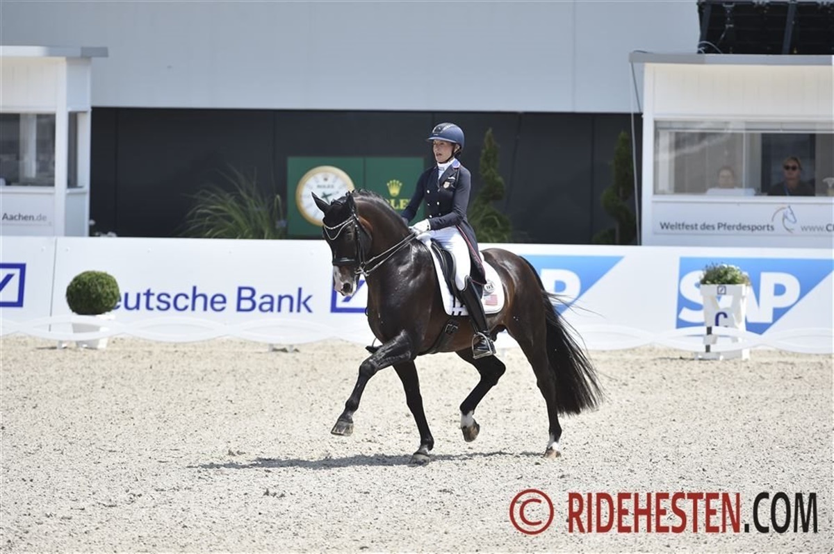 På tredjepladsen var der dansk islæt, idet danskfødte Charlotte Jorst, der nu bor i og starter for USA, med Kastel's Nintendo e. Negro/ Monaco scorede 76,350%. Selvom KWPN-hingsten efterhånden er blevet 19 år, så gør den sig bestemt gældende i topsporten endnu. I torsdagens Grand Prix red ekvipagen sig til en andenplads.