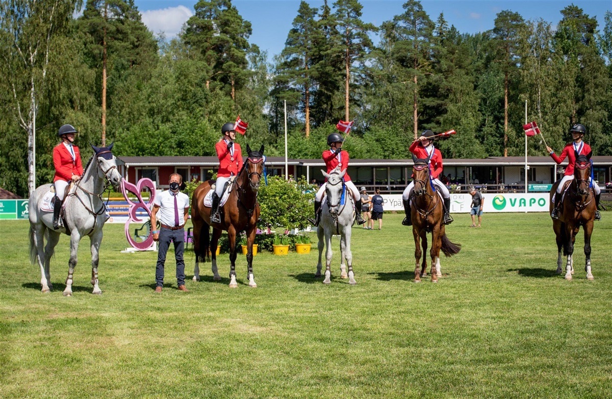 Det blev Sverige som var bedst og sejrede med samlet 6,15 fejl foran det danske hold med 9,67 fejl. Det danske hold bestående af Rie Rose Lindegren på Roed Newcomer, Maria Noerregaard Langhoff på Diarada S, Kamilla Ladefoged Rasmussen på Colina, Caroline Rehoff Pedersen på Chaccieny og Emilie Weilsby på Quincy vandt overbevisende sølv foran Norge som sluttede med 34,68 fejl.