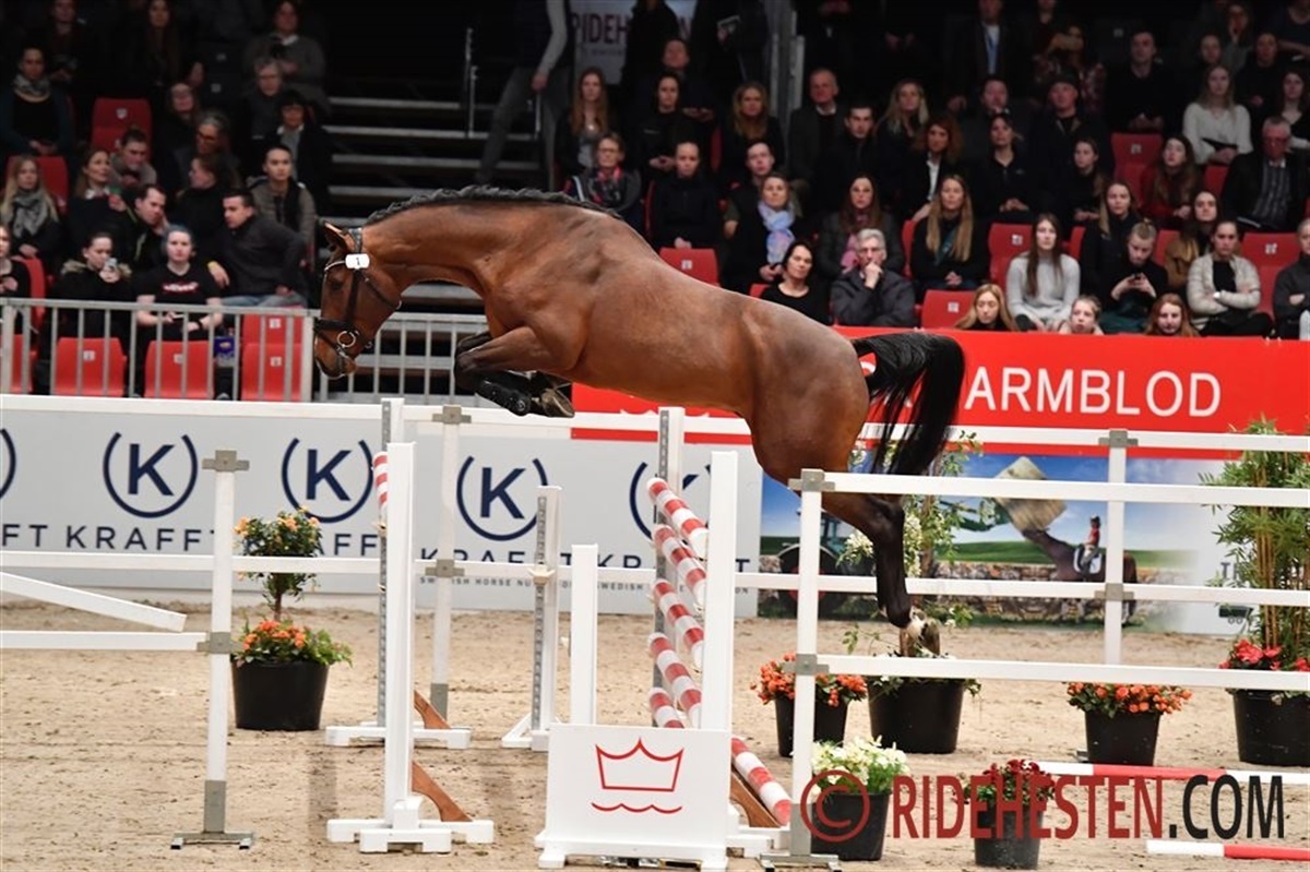 Mange havde fundet vej ind i Krafft Arena M for at følge løsspringningen af de 3-årige hingste. Det er nu fjerde gang, dommerne har set hingstene i deres rette element over bommene (efter forbesigtigelse, træning i februar og første løsspringning i onsdags). I dag sprang hovedparten af hingstene endnu bedre, end vi har set det. Normalt bliver hingstene lidt pressede af omgivelserne, når der er mere uro i hallen og mange mennesker samlet, men i dag var undtagelsen. Det gav en god stemning i hallen, da flere hingste viste stort overskud til at lege med forhindringerne. Det er jo ikke alle hingste, som får et godkendt prædikat på søndag, men det er en kollektion springheste med et ekstra gear, så får de ikke en karriere som avlshingste, så er der potentiale til en god sportslig karriere.