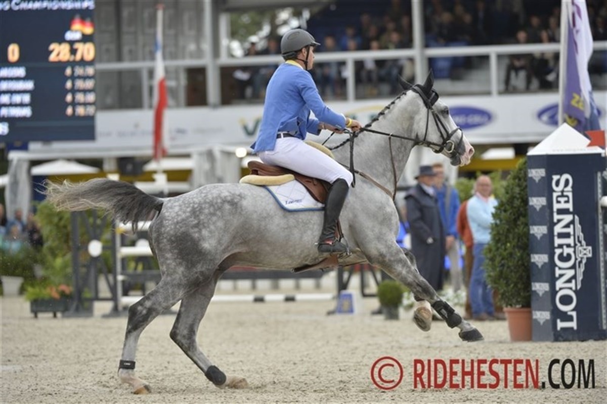 Banen for de 6-årige finalister ved UVM på Zangersheide var særdeles krævende, og det betød også blot 9 heste nåede frem til omspringningen. Daniel Cassøe Jacobsen kom ikke helt optimalt igang med Kia V og det kostede to nedslag, menherefter fandt de rytmen sammen på banen, og sprang resten fejlfrit. Jennifer Fogh Pedersen købte et føl på auktionen her på Zngersheide for 6 år siden, i år red hun Calango i finalen og også de fik 8 fejl, da det så ud som om Calvados Z-sønnen løb tom for energi.