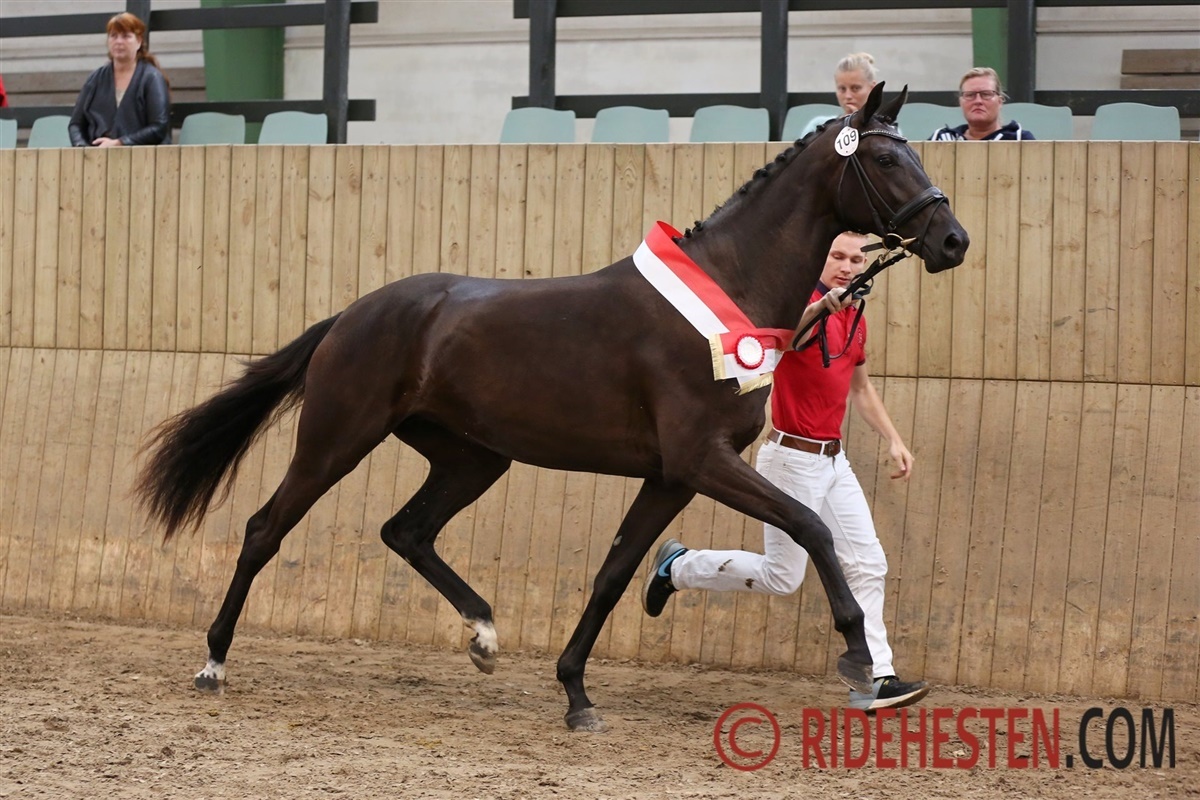 Storrammede og ædle kat 144, Springborgs Ganya e. Knock-Out/ Sir Donnerhall I fra Stutteri Springborg tog placeringen som nummer to, og er derfor også inviteret med til eliteskuet, efter at have vist dagens dommere stor bæring i trav og galop. Nummer tre og reserve til eliteskuet blev med sin flotte type kat 159, Straight Horse Sanza e. Straight Horse Sir Romance/ De Niro, avlet og ejet af Straight Horse ApS.