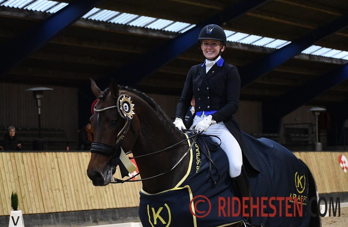 I går red ekvipagen til 77,5 procent i Grand Prix, og de to resultater sammenlagt sikrede, at de endte med samlet 154,003 point i mesterskabet. Det var blandt andet rigtig flotte og stabile passage-momenter, der sikrede netop denne ekvipagens titlen som jyske mestre 2021.