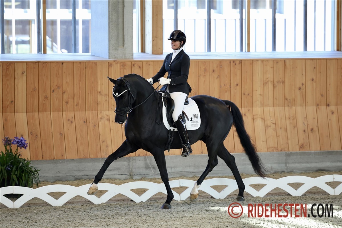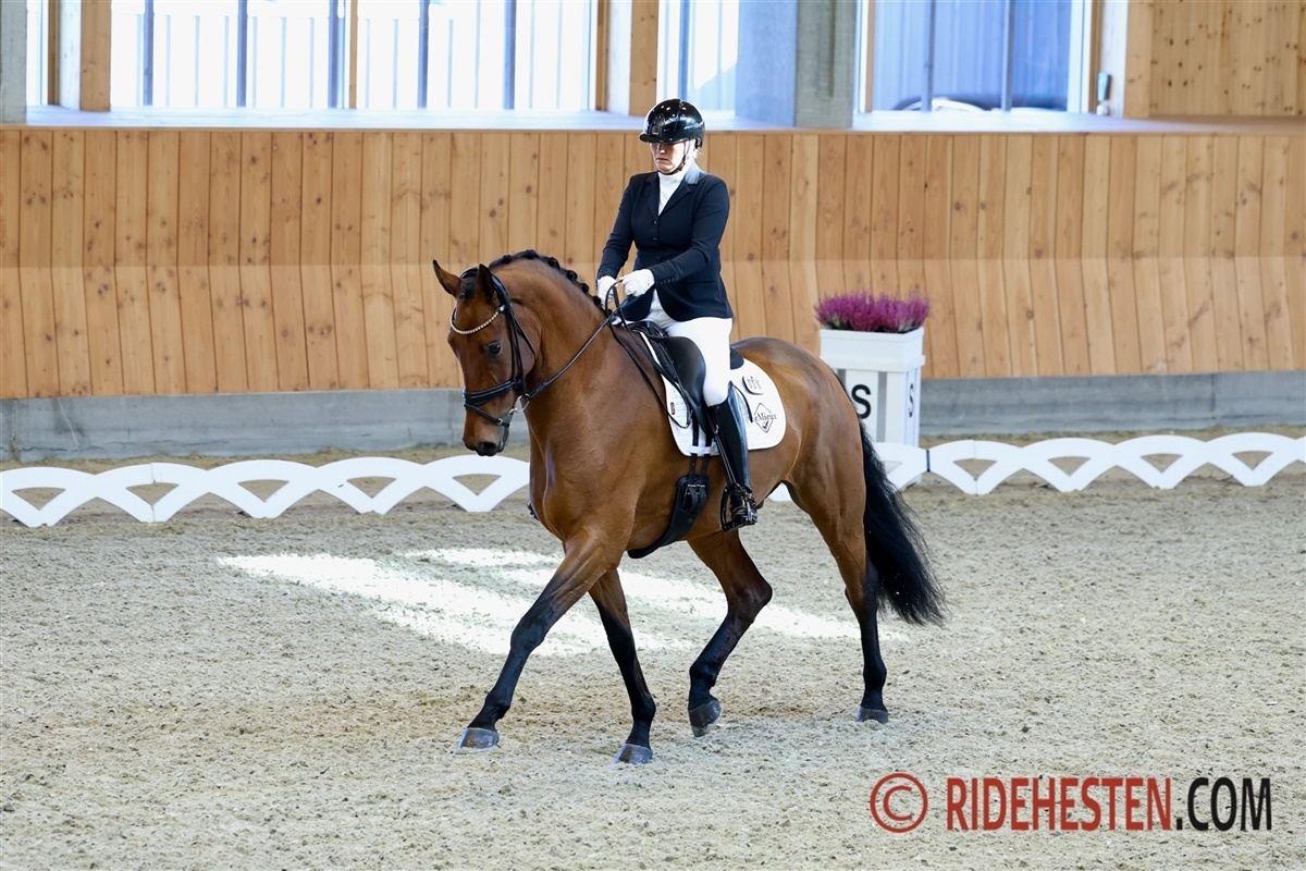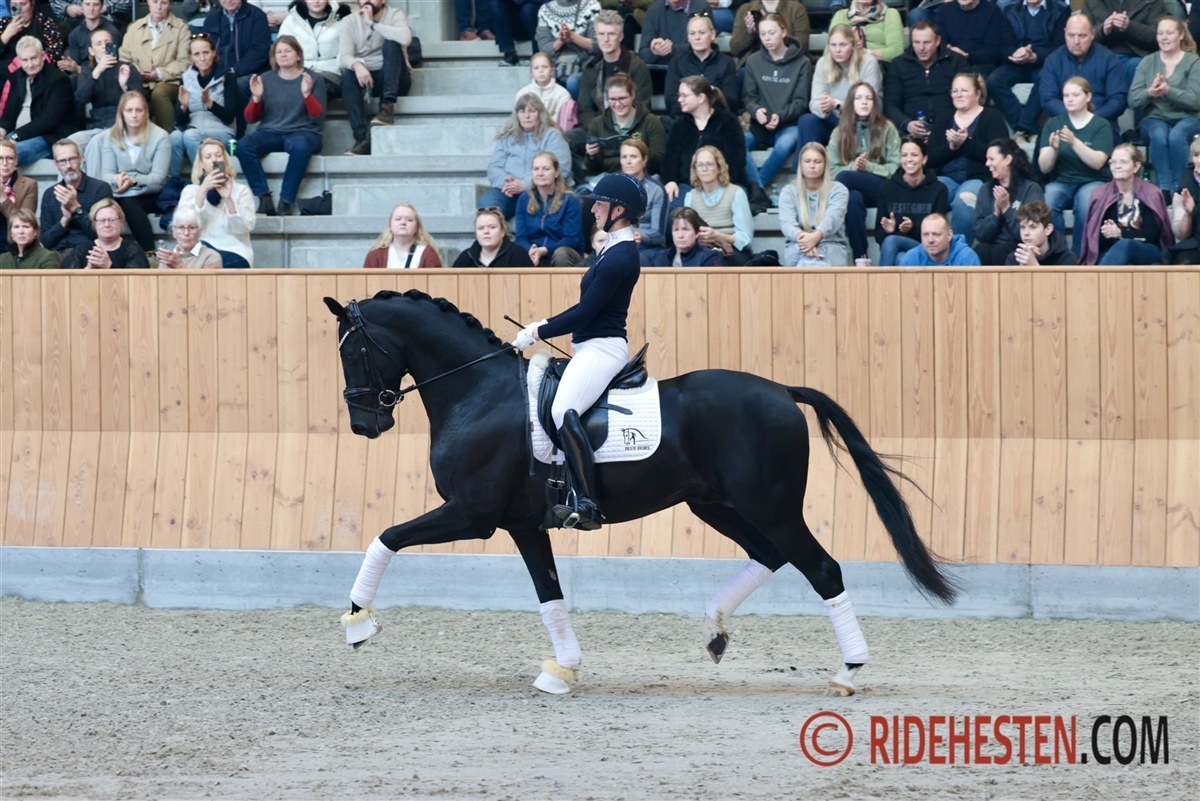 Det var nemlig den røde DV-hoppe Stenkærgårds Plasini e. Janeiro Platinum/ Uphill (opdr. Helle Skelde), der løb med en suveræn sejr. Med hele 93,286% og blandt andet 9,5 for skridt, kapacitet og harmoni, 9,3 for galop og 9,0 for trav og ridelighed, blev det til en overbevisende sejr for hoppen, der i dag blev flot fremvist af Anders Uve Sjøbeck Hoeck.