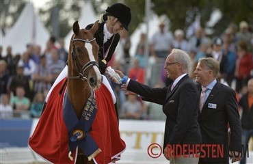 I 2004 oprettede Dansk Varmblod sit springhesteprogram og specialiseringen af blodlinjer som er et resultat af det har bevirket, at forbundet oplever en stigning i kvaliteten, hvilket dette års kollektion er et resultat af, sagde avlsleder Karina Christiansen bl.a. Springhingstene har gennemgået et hårdt selektitonsprogram, hvor dommerne har vurderet hingstenes type, ædelhed og hingstepræg og holdbarhed af lemmer, arvelige defekter vha. røntgen samt vurderet deres funktion, balance rummelighed og indudnergriben i galop samt naturligvis springegenskaber samt indre egenskaber som mod og overblik er indgået i bedømmelsen. - Det er en rigtig flot kollektion - tre er da helt i særklasse, det drejer sig om kat. 3 Cavall Ask e. Calido I, kat 8 Chandler e. Casall og kat 19 Mønsteds Hardcore e. Heartbeat. Årets bedste springhingst blev kat nr. 3 Cavall Ask fra Stutteri Ask indkøbt som præmiehingst ved kåringen i Oldenburg sidste år. Dressurhingstene Fantastisk flotte og typefaste gangartskometer - en hel ekstraordinær høj kvalitet i år - især fem hingste har imponeret dommerne, sagde avlslederen: kat. 34 Tailormade Attention e. Abanos, 37 Era Dancing Hit e. Uno Don Diego, 45 Freezbee-Pari e. Firenze, 68 Zonik e. Blue Hors Zack og 71 Blue Hors Olymbrio L. Årets bedste en hingst i hel særklasse med en smidighed som en veltrænet danser: Era Dancing Hit fra Jørgen Steen Jensen, der havde to hingste med i præmieringen. Springbetonede præmiehingste: 3 CAVALL ASK Ejer: Stutteri Ask , Fynshovedvej 417, , 5390 Martofte Født hos: Hubert Hermeling, Jammertal 11, D 49699 Lindern, 6 Tyskland. F: CALIDO I DE321210301691 M: CINDERELLA DE433330354904, MF: C INDOCTRO DE321210242990 8 CHANDLER Ejer: Hingstestation Højagergård v/Jørgen Steen Jensen, Nørregade 36, Lauerbjerg, , 8870 Langå Født hos: Waldemar Beuck, Tyskland. F: CASALL DE321210208399 M: PASSA DE421000133000, BP ZB MF: CAROLUS I DE321210034486 19 MØNSTEDS HARDCORE Ejer: Ina Mønsted Pedersen, Sejstrupvej 1a, , 6740 Bramming Født hos: Ina Mønsted Pedersen, Sejstrupvej 1a, , 6740 Bramming. F: HEARTBEAT DVH 871 M: PINEAPPLE RDH 3428, DH MF: COME FAST XX DVH 666 Dressurbetonede præmiehingste: 34 TAILORMADE ATTENTION Ejer: Tailormade Horses ApS , Legindvej 5, 7900 Nykøbing M Født hos: Lone Christiansen, Farupvej 14, , 6760 Ribe. F: ABANOS DVH 765 M: MØLLEGÅRDENS KABARET 208333200200356, RDH MF: BØGELYS CAMARO DVH 741 37 ERA DANCING HIT Ejer: Jørgen Steen Jensen Stutteri Højagergaard ApS, Nørregade 36, , 8870 Langå Født hos: Stutteri ERA I/S , Hørbygårdvej 1, Øls, , 9500 Hobro. F: "UNO" DON DIEGODVH 908 M: SUMATRA HIT DE427270322401, RDH MF: SANDRO HIT DVH 872 45 FREEZBEE PARI Ejer: Priess Horses A/S , Legindvej 5, 7900 Nykøbing Mors Født hos: Ruth & Jørgen Søgård, Kjallerupvej 5, Stutteri Horsfeldt, 7755 Bedsted Thy. F: FIRENZE DVH 900 M: PARI ANN 208333200205004, RDH MF: AKINOS DVE 659 68 ZONIK Ejer: Helgstrand Dressage , Uggerhalnevej 80, , 9310 Vodskov Født hos: Linette Jæger, Tvedvej 3, , 7490 Avlum. F: BLUE HORS ZACKDVH 943 M: ROMANIK 208333DW0403445, BRDH MF: BLUE HORS ROMANOV DVE 818 71 BLUE HORS DON OLYMBRIO L Ejer: Blue Hors ApS, Tørskindvej 70, 7183 Randbøl Født Hos: Holland F: JAZZ M: OLYMBRIA MF: OLYMPIC FERRO
