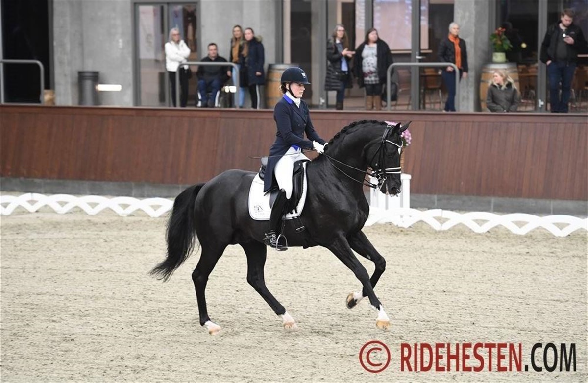I dagens første klasse, som blev afviklet i formiddags, blev det Betina Jæger Jensen med den 10-årige DV-hingst Franklin e. Ampere/Olympic Ferro der løb med sejren, efter de leverede et ridt til 72.778 %.