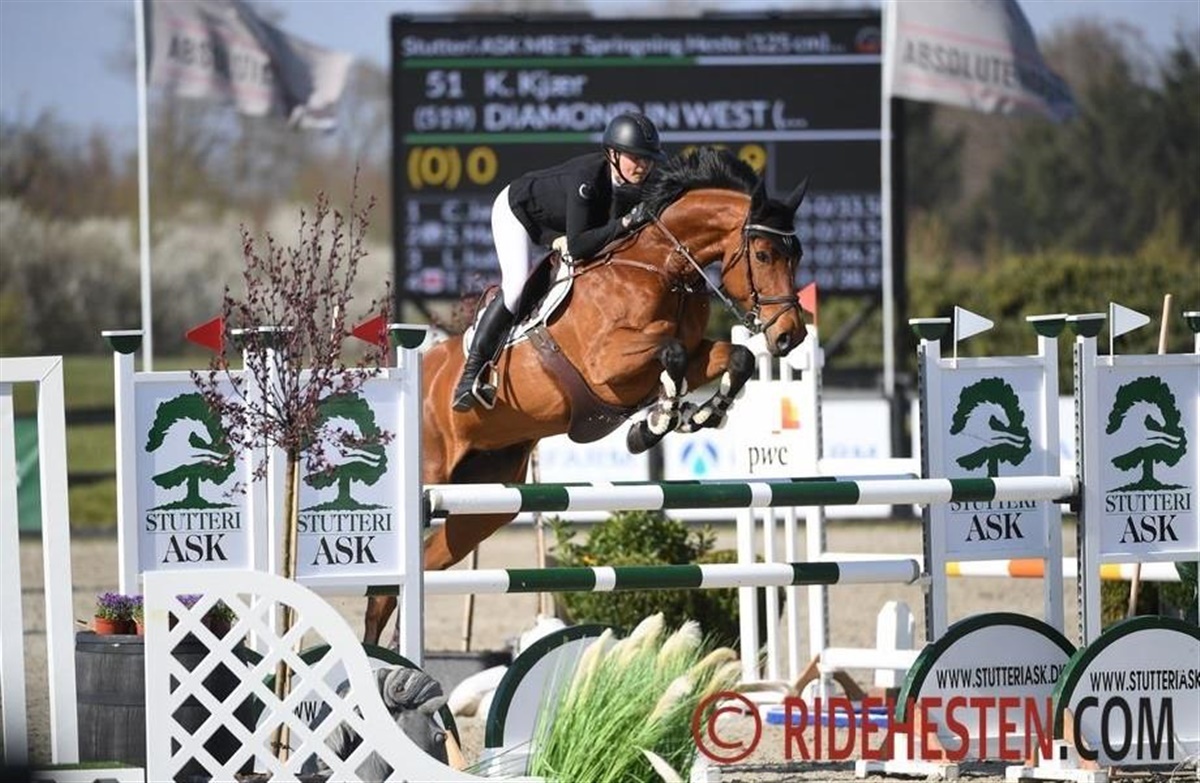 I juniorernes "Small Tour" red Karoline Sloth Kjær sig fredag til en flot fjerdeplads sammen med den 11-årige brune hoppe Diamond in West e. Diamant de Revel/ Careful. De to red nemlig fejlfrit i begge runder i tiderne 30,20 sek. og 34,26 sek.