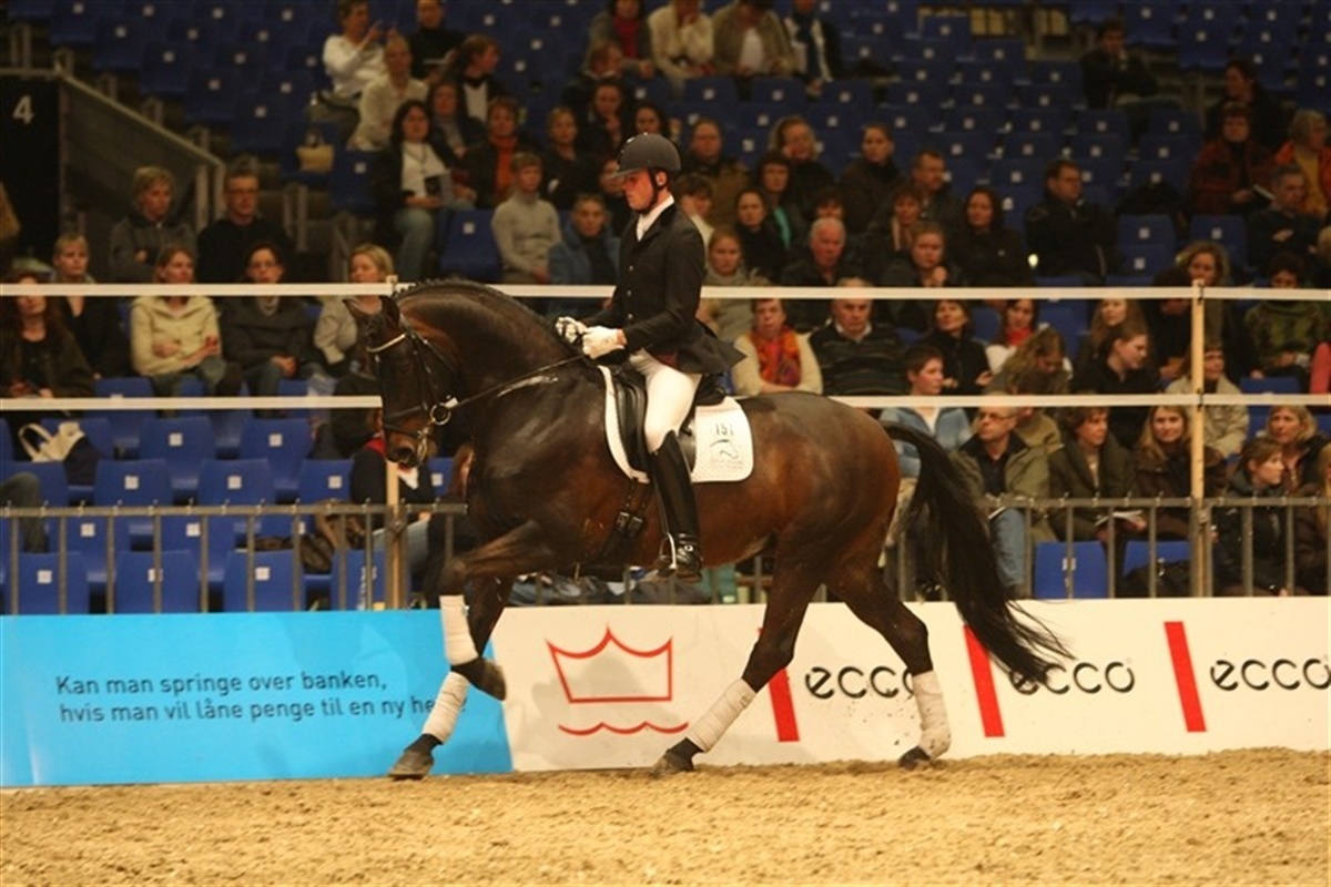 Der var topblod i særklasse i holdet af ældre spring- og dressurhingste. De 5-års og ældre hingste var så imponerende, at avlsledelsen udpegede hele ni springhingste og 10 dressurhingste - og dem har publikum så kunnet nyde i konkurrenceklasserne alle dage i Herning. Der var feststemning i hallen, da kåringskommissionen trak i arbejdstøjet og sammen med hingsteholdere og mønstrere præsenterede alle de kårede hingste for det opmærksomme publikum. Avlsleder Karina Christiansen gav karakteristik af de enkelte hingste, så publikum kunne høre dommernes bevæggrunde for, hvorfor netop denne hingst opnåede kåring. - Det er et spændende og stærkt hold, idet flere af hingstene har internationale resultater på topniveau, sagde Karina Christiansen bl.a. i sin karakteristik af springhingstene. Den danskopdrættede hingst Bøgegårdens Chico e. Carano fra Bøgegården v/Jørgen Schmidt blev tildelt en opdrættermedalje i sølv for sin eminente præstation ved afprøvningen. Kåringskommissionen kom på arbejde, da fløjen skulle findes, forklarede avlslederen. - Der var flere kandidater, men valget faldt på den topmoderne og særdeles velspringende hingst, der har vunder to springklasser i Herning med Martin Hussmann - Chellys Z e. Chellano Z ejet af BFC Horses ApS, Vejle. Dressurhingste i særklasse Også holdet af ældre dressurhingste rummede en perlerække af hingste, der har gjort det godt både i avlen og sporten, naturligvis med skyldig hensyntagen til deres alder. - Der har været hård kamp om fløjpladserne. Vi har valgt en hingst, der ikke er ukendt med at stå på fløjen i Herning, sagde avlslederen. - Damsy var også fløjhingst tilbage i 2006 i Herning, og nu er han tilbage efter at være kvalificeret til Bundeschampionatet i 2007. Hingsten er efter Dressage Royal og fremvises af Hengststation Jens Meyer.