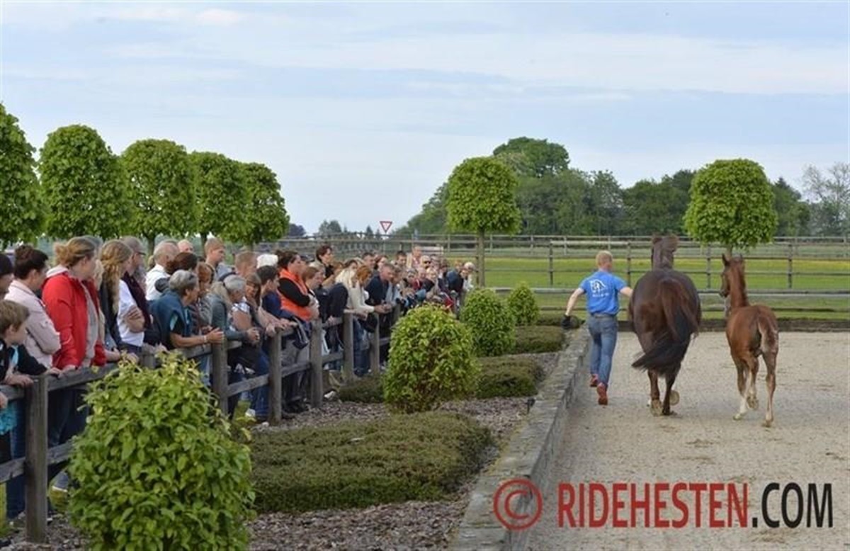 Arrangementet starter på gårdsplandsen foran hingstestalden, hvor avlshingstene bliver trukket frem til skue for avlerne, og Blue Hors direktør fortæller om enkelt hingst. Derefter vil en række føl blive fremvist på ridebanen - og heriblandt føl af første årgang efter de yngre hingste.