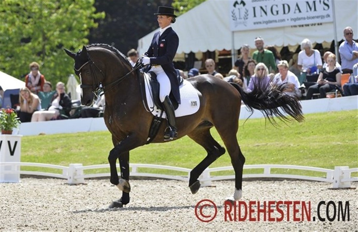 Jim Rasmussen og Broholms Highlight blev sidste år nr. 10 ved DM - i dag viste de et sikkert program, med en flot afsluttende midterlinje i piaffe og passage, og de fik 66,438% - totalt 132,11 points