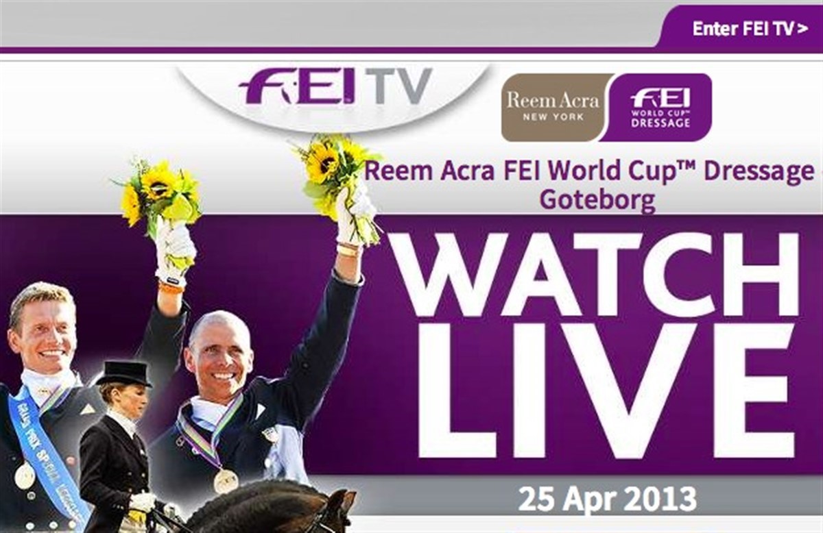 Finalerne i Rolex FEI World Cup™ Springning, og Reem Acra FEI World Cup™ Dressur, der finder sted i Göteborg i denne weekend bliver sendt live på FEI TV. Der skal betales for at se FEI TV, men der findes forskellige pris-pakker.