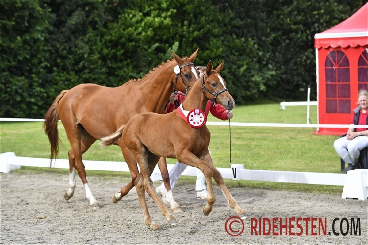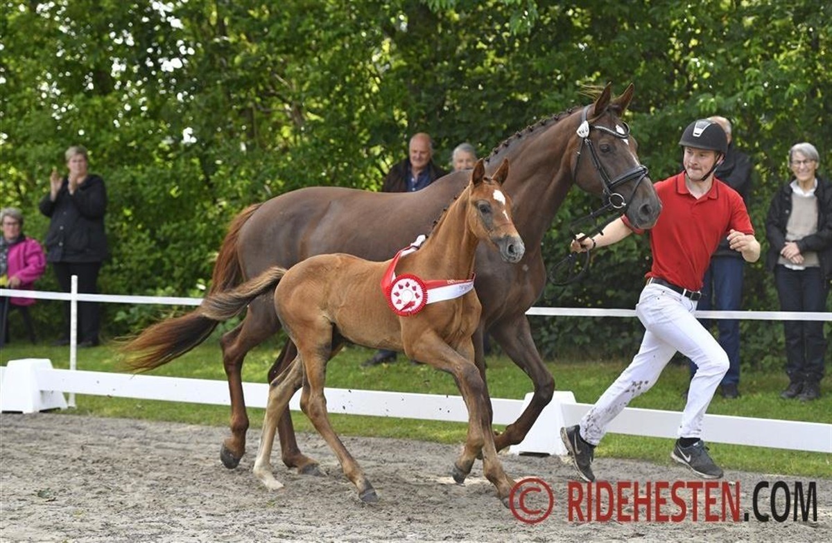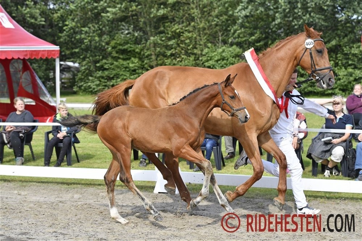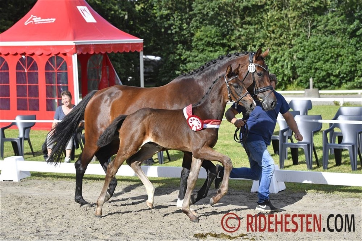 Det blev til et billet til Eliteskuet for Unico Jm e. Untouchable/Ladas som er avlet og ejet af Melanie Andersen og Jørgen K. Hansen i Christiansfeld som formåede at blive dagens springbetonede hingsteføl, mens reserven til eliteskuet og dagens nummer to blev Præstegårdens Huxi e. Humberto Ask/Qidam De Revel fra Bennt Rheimer i Gråsten .