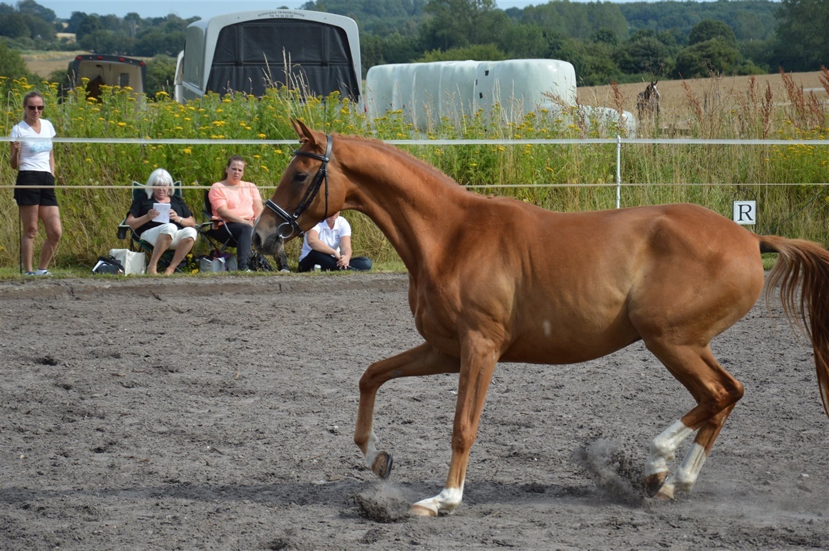 Ved hoppekåringen som 3 års havde hun gjort præcis som de havde øvet hjemmefra. Man havde stillet hende op til bedømmelse. Hun stod med siden ud mod dommerne og strakte flot sin hals. Første gang på udebane og stod her smuk som en prægtig statue, så man kunne beundre hele hendes væsen og skønhed. Hun havde gjort sig umage.