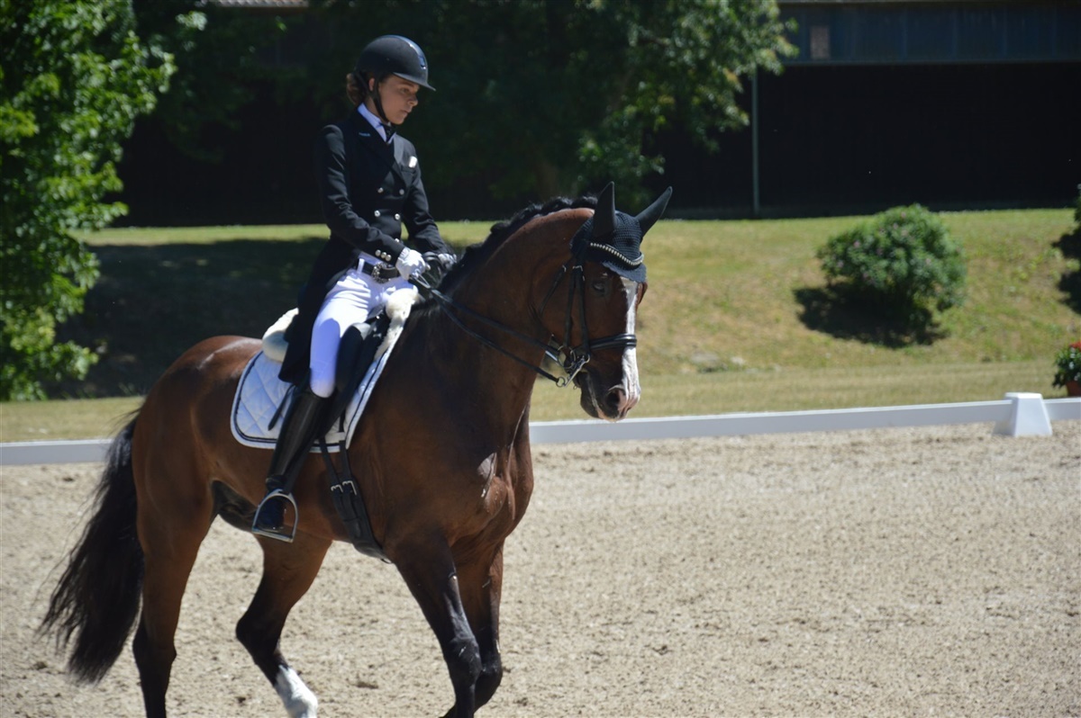 Efter sessionerne med mig debuterede parret internationalt. Hun beskrev, at hesten havde fået mere ro på under opvarmningen og blev ved hende hele tiden inde på banen, så flere øvelser i programmet lykkedes.