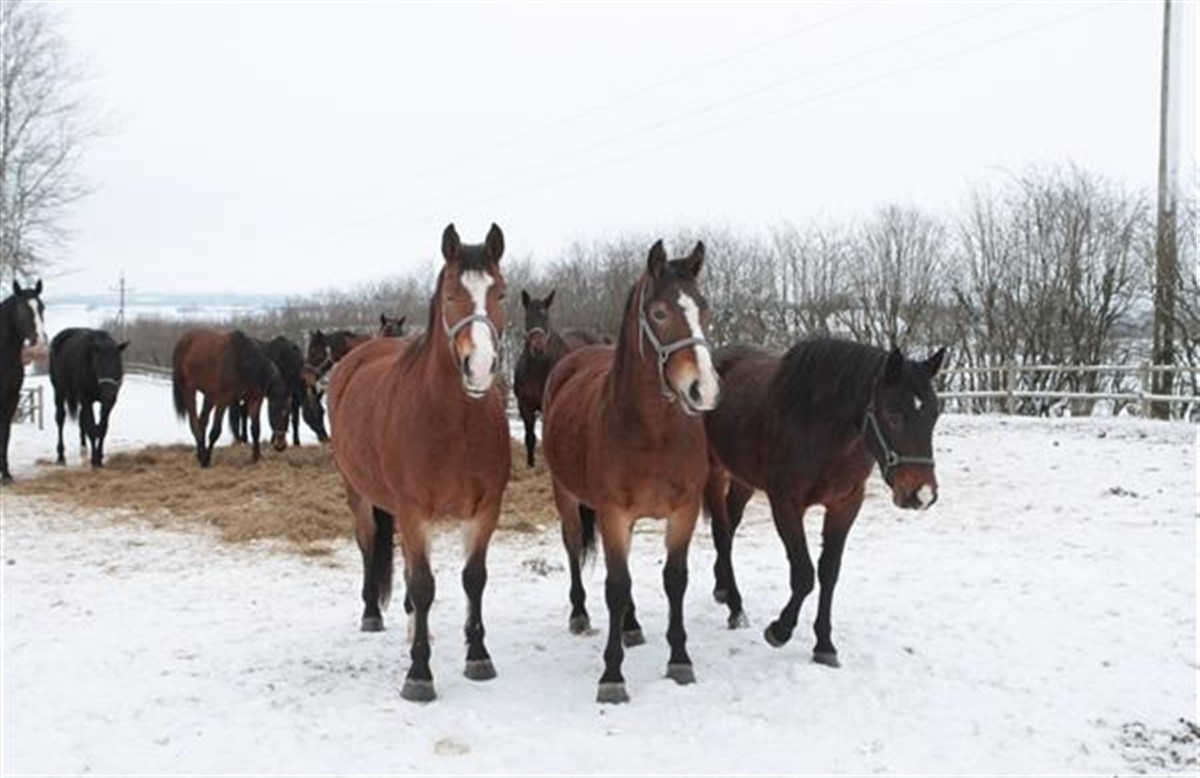 Vinteren betyder ekstra udfordringer for hestene og derfor også for hesteejerne, både med hensyn til at holde hesten varm, tør og i god foderstand: - Fordøjelsen skaber varme hos hesten og koldt vejr øger kaloriebehovet, så det er vigtigt at tage med i foderplanen. Samtidigt falder græssets næringsindhold, så hesten får brug for ekstra hø og muligvis også supplerende vitaminer og mineraler. - Heste på fold har brug for vand døgnet rundt, så sørg her for, at vandet ikke fryser, for sne alene dækker ikke hestens væske behov i længden. - Efterse hestens tænder, for tandproblemer kan være skyld i dårlig foderudnyttelse og et vægttab er ikke ønskværdigt hen over vinteren. - Går hesten ikke med dækken om vinteren, så husk at lade pelsen blive tyk, så den isolerer bedst muligt. Sørg også for at hesten kan holde sig tør, da en våd pels mister sin isolationsevne. - Klippes hesten får den brug for dækken som erstatning for pelsen. Også ældre eller svage heste kan have brug for dækken hen over vinteren. Det er dog vigtigt, at dækkenet holdes tørt (ikke bliver vådt af regn, sne eller sved). - Sørg for, at hesten er vaccineret. - Få hesten tjekket for orm – efter den første hårde frost er et godt tidspunkt for behandling mod eventuelle orm. - Går hesten meget ude, kan det være en god idé at lade den gå uden sko om vinteren, da det kan hjælpe den til at stå bedre fast. Så undgår man også, at sneen klumper sammen under skoene. Tal evt. med smeden om alternative løsninger, hvis hesten er meget ude, men ikke kan undvære skoene. Kilde: The Horse