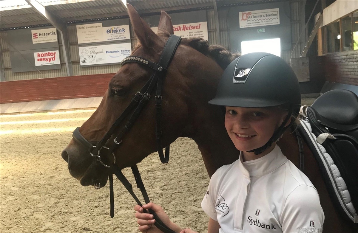 I sidste weekend var Aurora og jeg til landsstævne som en del af forberedelsen frem mod Nordisk Mesterskab. Vi skulle ride PRI, PRT og PRM. Første dag var PRI, mine forældre skulle arbejde, så jeg var alene med min træner, men vi kender hinanden rigtig godt, så det var ok. Aurora var super på opvarmningen og så red vi en af de ture, hvor det hele bare virker. Hun var med mig hele vejen og vi red 73% og vandt. Næste dag var PRT. Aurora var lidt bag mine schenkler på opvarmningen og jeg fik det ikke helt løst, så hun lavede en mega dyr fejl i galopprogrammet, men vi endte med 68% og en tredje plads, så det var ok. Sidste dag var PRM her var hun fin og med mig på opvarmningen, men på banen fik hun lige øje på en mand der gik med en barnevogn og spændte lidt op så det kostede mig et enkelt 6 tal og dermed sejren, men vi red stadig 70% så det var jo fint, og vi fik en anden plads. Gråsten havde nogle mega seje rosetter, og jeg fik så en i hver farve med Aurora.