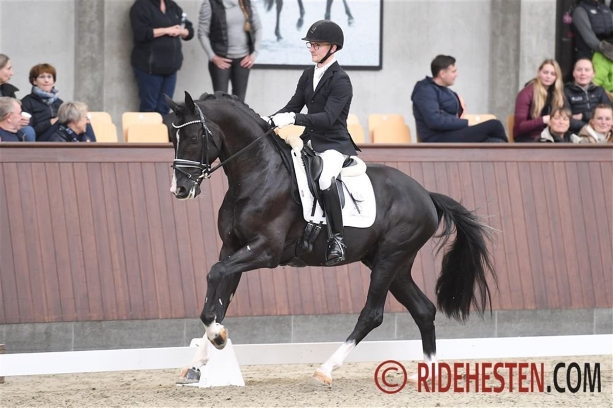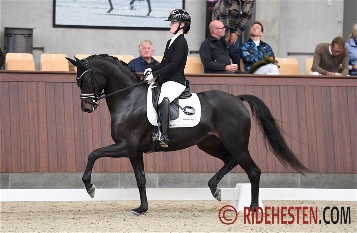 Dommerduoen måtte have det glatte 10-tal på tavlen, da Josefine Dahl Hoffmann havde redet Anna Kasprzaks elegante hoppe RGS Finest Alegra e. Finest/ Ampère. Den meget lydige og lydhøre hoppe er utrolig opmærksom på rytterens hjælpere – alt i alt helt forbilledlig ridelighed. Dommerne gav endvidere 9,3 for trav, 9,7 for skridt, 9,0 for galop og 9,5 for kapacitet, hvilket blev til hele 9,5 samlet og en suveræn sejr. – Jeg har redet hende, siden Anna købte hende sidste år i december, og hun er virkelig sød og meget let at ride, fortæller hoppens rytter Josefine Dahl Hoffmann.