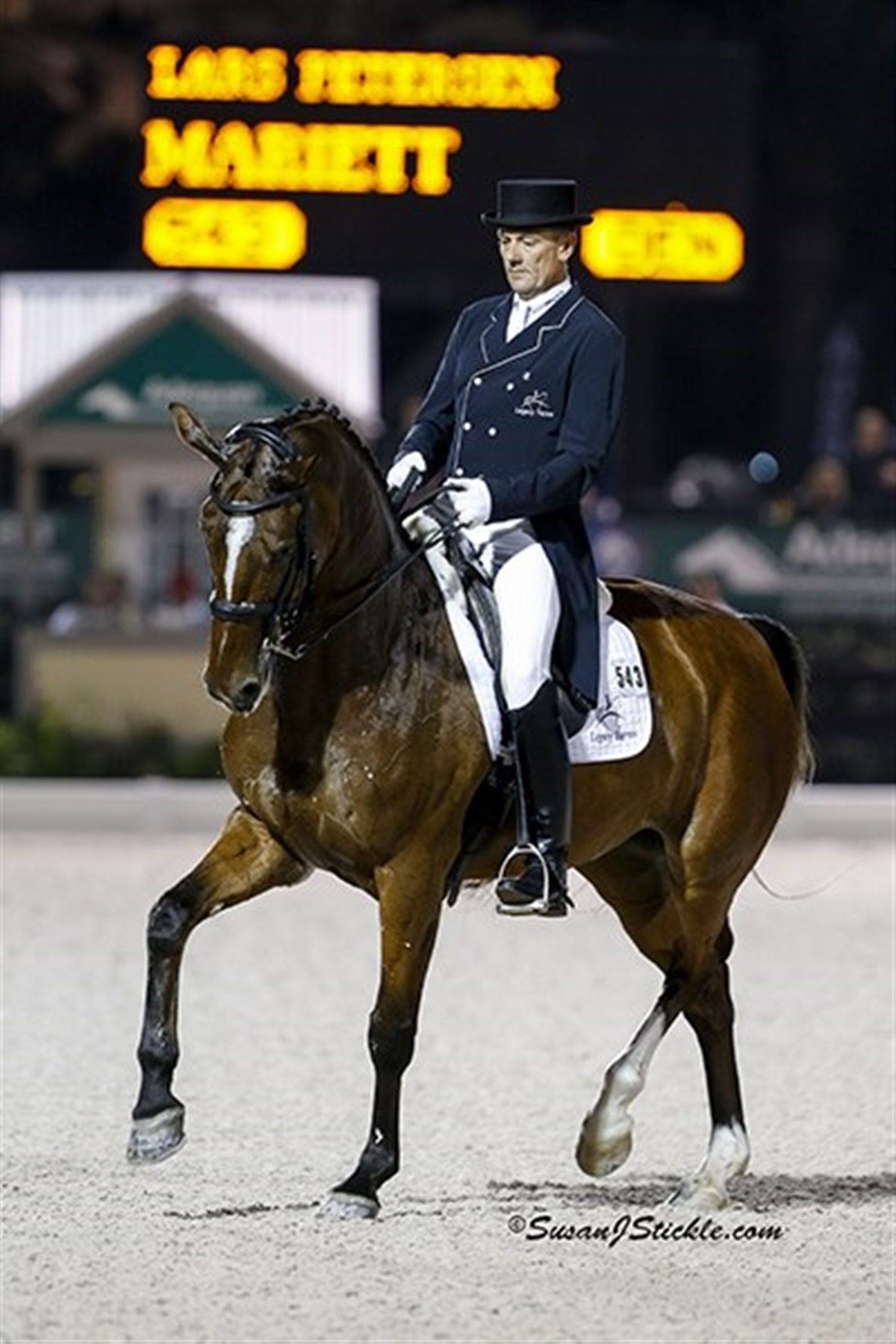 Tredjepladsen gik til danske Lars Petersen og den 16-årige DV-hoppe Mariett e. Come Back II/ Sydney (opdr. Gunnar Mousten) med 76,625%. Lars Petersen udtalte, at han var særdeles tilfreds med Mariett, som er i aldeles topform for tiden, selv om han for tiden har en lille udfordring med piafferne, der koster nogle point. Ekvipagen er en af de tre danske ekvipager, der er udtaget til World Cup finalen i Lyon.