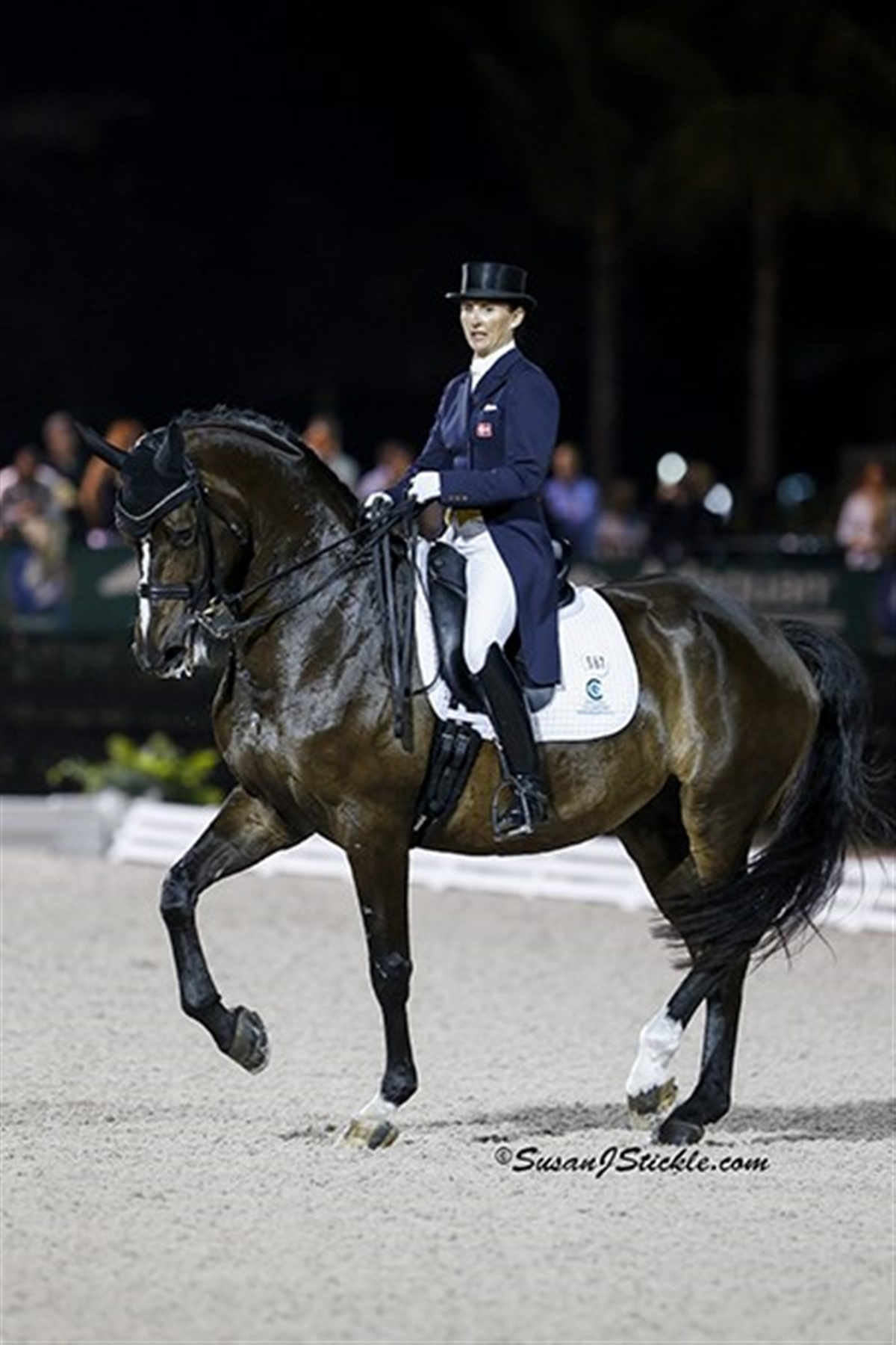 Sejren gik i nat helt suverænt til amerikanske Tina Konyot og hendes danskavlede hingst Calecto V e. Come Back II/ Rastell (opdr. Inge Toft) med 79,25%. Ekvipagen er udtaget for USA fra den nordamerikanske liga til at World Cup finalen i Lyon, Frankrig i påsken.