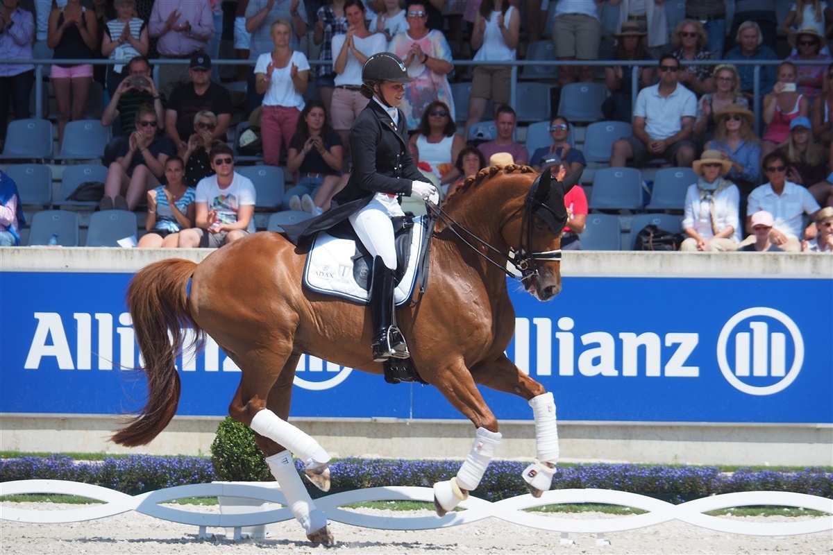 Set med dansk hesteavls øjne, og som tilskuer for øvrigt, var det dagens store positive overraskelse at Kasey Perry-Glass fra USA, med den danskavlede Gørklintegaards Dublet efter Diamond Hit -Ferro, kunne slå sin landsmand Laura Graves og Verdades, som nu havde affundet sig med TV kameret. Kasey og G. Dublet havde en dag hvor al ting klappede, og den er gevaldig stærk i alle de svære øvelser, hvilket var en ren fornøjelse at se på. De opnåede hele 85.205%, hvilket cementerer de amerikanske dressurrytteres styrke.