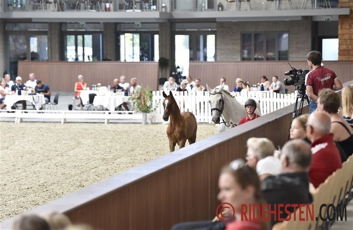 Hingsteføllet Vestermarkens Kenzo e. Blue Hors Kingston/ Tailormade Temptation (opdr. Kirsten Buus) var det føl, der entrerede i hallen med det største forudgående bud, og det var ikke svært for det yderst charmerende og velgående føl at holde interessen, da det travede og galoperede den ene omgang efter den anden med stort overskud.