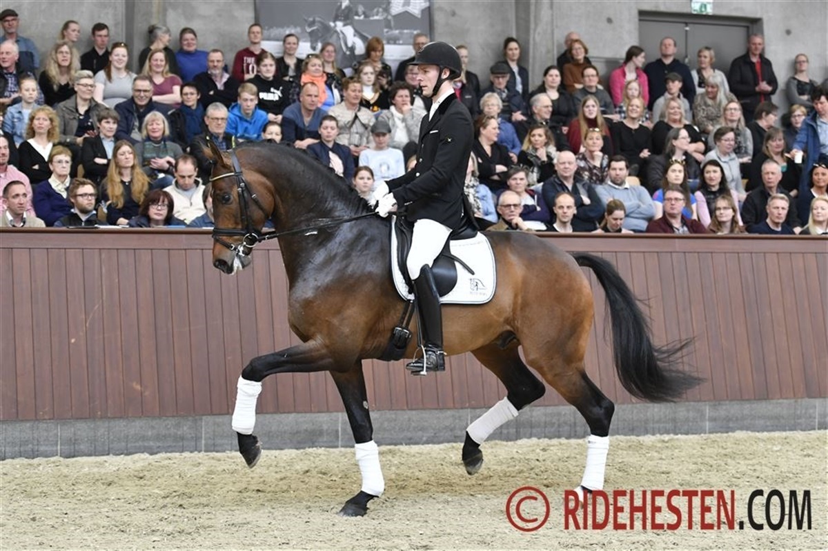 8-årige Veneziano gav under Daniels kyndige ridning publikum et godt indblik i, hvor langt han er kommet i sin uddannelse og efterhånden er klar til at gøre de internationale dressurbaner usikre. Mens avlerpræmieringen fandt sted, var der tid for Daniel til at varme vallakken Zepter e. Zack x Wolkentanz II op. Zepter er et rigtigt godt bud på Blue Hors’ næste landsholdshest, og mon ikke også hans far bliver et af Danmarks skarpe våben ved VM i Tyron til sommer? Med en taktfast klapsalve ønskede publikum Daniel en god tur til Word Cup-finalen i Paris med Zepters far Zack.