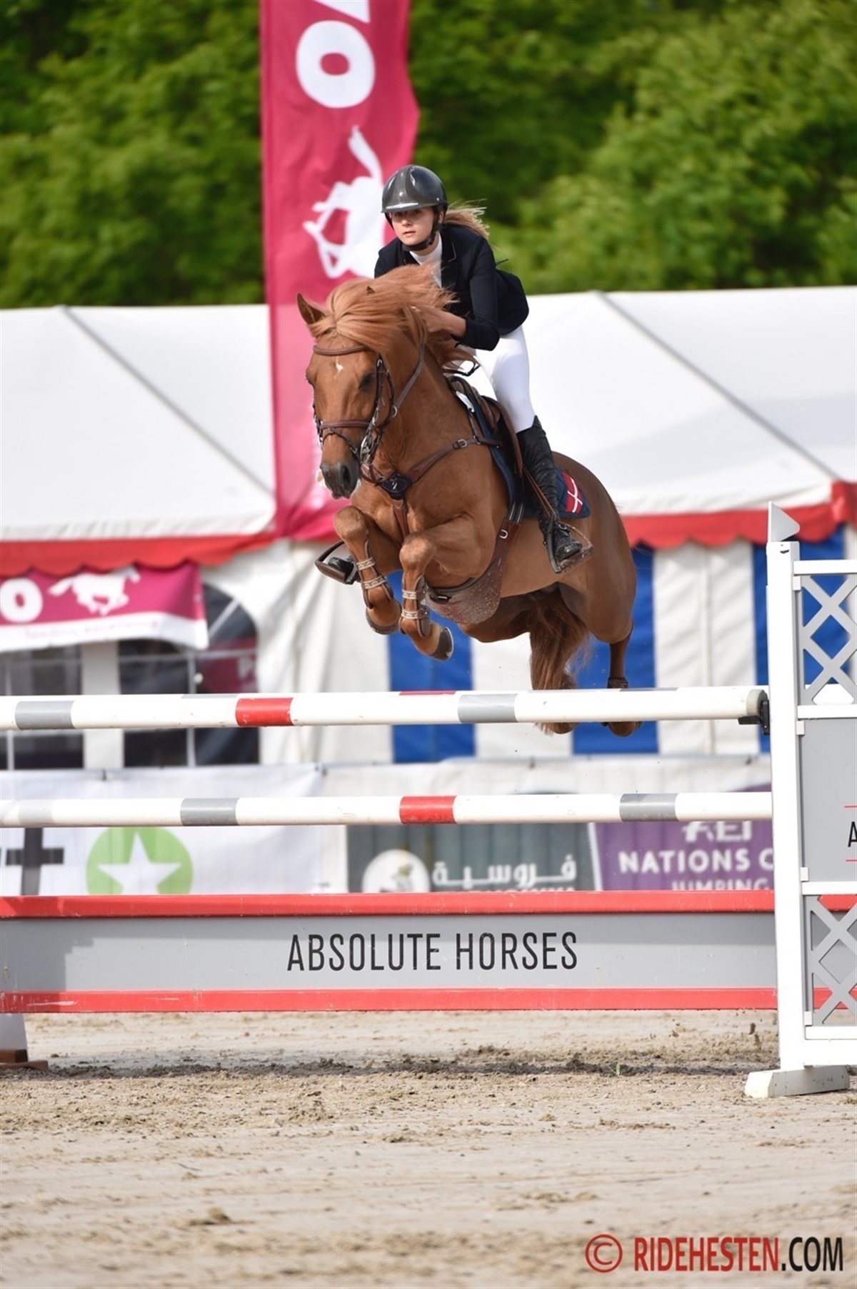Det danske ponylandshold der skulle ride Nations Cup bestod af Laura Baaring Kjærgaard, Pernille Harritslev Dam, Gustav Christian Jakobsen og Anna Weilsby. Holdet trak startnummer et, og derfor var det en dansker, der var allerførst på banen til dagens springrunde, der bød på 130 cm. I første runde fik holdet desværre 8 fejl med sig til anden runde, hvor spændingen for alvor tog til. Gustav Christian Jakobsen blev desværre diskvalificeret, men til trods for det leverede det danske hold en flot runde, der endte med nul fejl.