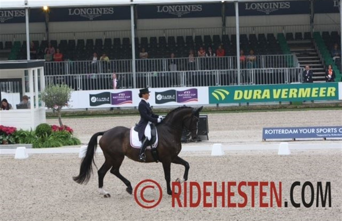 Mikala Gundersen og My Lady e. Michellino / Ritterstern (opdr. Yvonne Lindholm) lagde flot ud i Grand Prixen i dag med flotte øgninger og piaffe/passage, beretter Ridehesten.com's udsendte i Rotterdam. I skridten blev hoppen noget spændt, og spændingen havde desværre ikke fortaget sig i piaffe/passage ind over midten, hvor my lady sprang. Parret fandt tilbage i god rytme og havde en god galoptur. Ridtet blev belønnet med 67,416%.