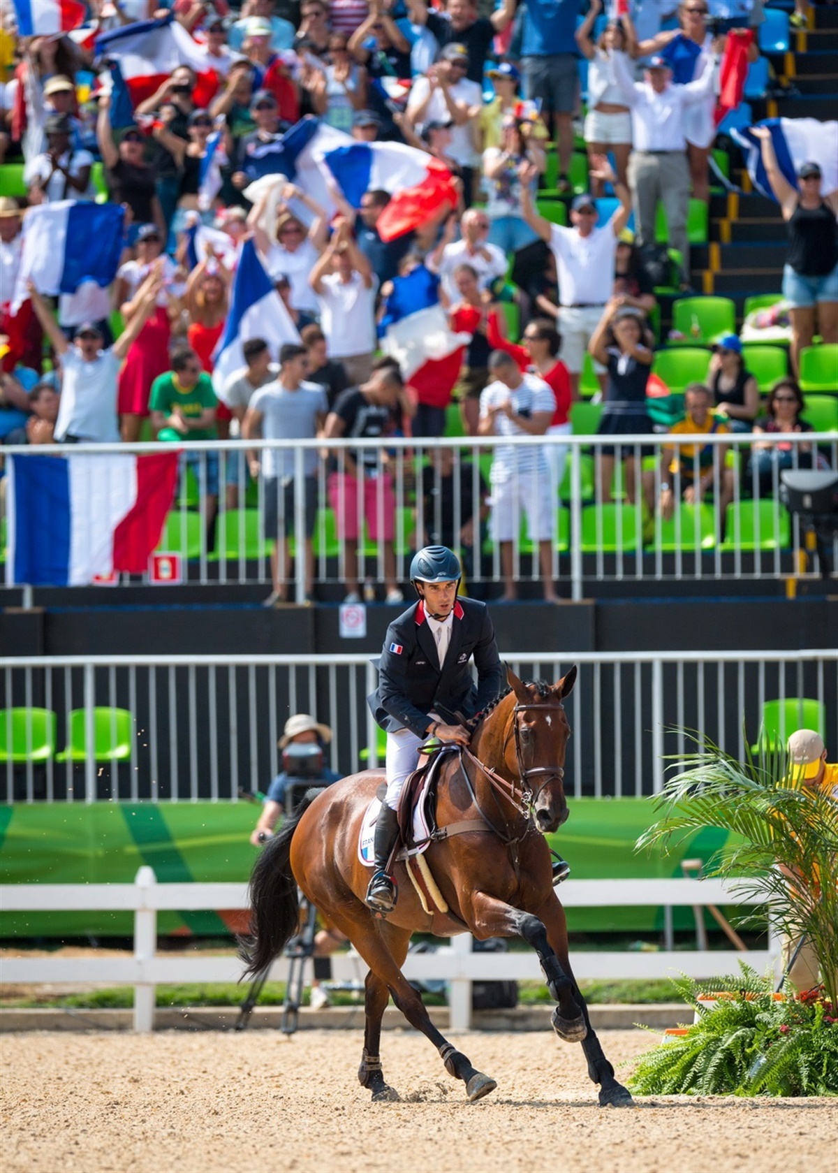 I den tyske lejr var stemningen anderledes optimistisk for de erfarne ryttere Sandra Auffarth (Opgun Louvo) og Ingrid Klimke (Hale-Bob) revancerede et mendre godt terrænridt ved at ride fejlfrit i dagens ridebanespringning, og det gjorde den regerende olympiske mester. Michael Jung også på Sam. Det satte franskmændene under pres, men de havde ikke til sinds at smide guldet væk, og sejren blev cementret af Astier Nicolas og Piaf de B'Neville, som med et fejlfrit ridt sikrede Frankring guldet foran Tyskland.