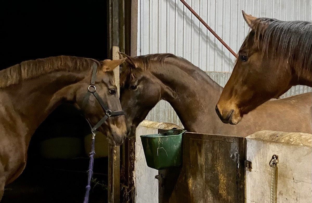 Hjemme i stalden har jeg tre unghopper og en nyindkøbt avlshoppe. Unghopperne er to 2-års hopper, Kærvangs Safran efter Bøgegårdens Santiago/Don Schufro/Primus AA og Kærvangs Saga efter Gørklintgårds Santos/Romanov/Don Schufro og så en 1-års hoppe, Kærvang Feline efter Blue Hors Farrell/Midt-West Ibi-Light/Don Schufro. De er alle fra samme hoppefamilie og stammer tilbage til min første avlshoppe efter Blue Hors Don Schufro.