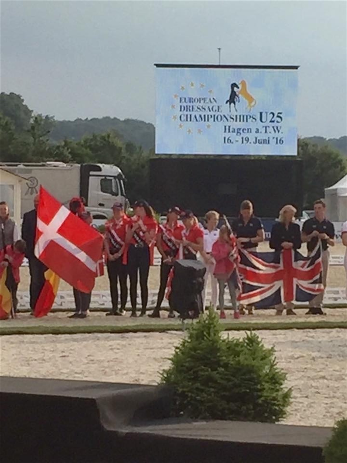 Hjemme igen efter en fantastisk weekend på det flotte Hof Kasselmann der afholdt Europamesterskaberne for U25 Dressur. Det danske landshold, der bestod af Nicoline Graff, Julie Dankau, Sille Engermann og Anna Zibrandsen leverede alle super flotte resultater. Danmark fik 3 ekvipager med til finlalen søndag. Et kæmpe stort til lykke til alle fire ryttere med de flotte præstationer. Kingsland og Catago var sponsorer for udstyr til ryttere og heste.