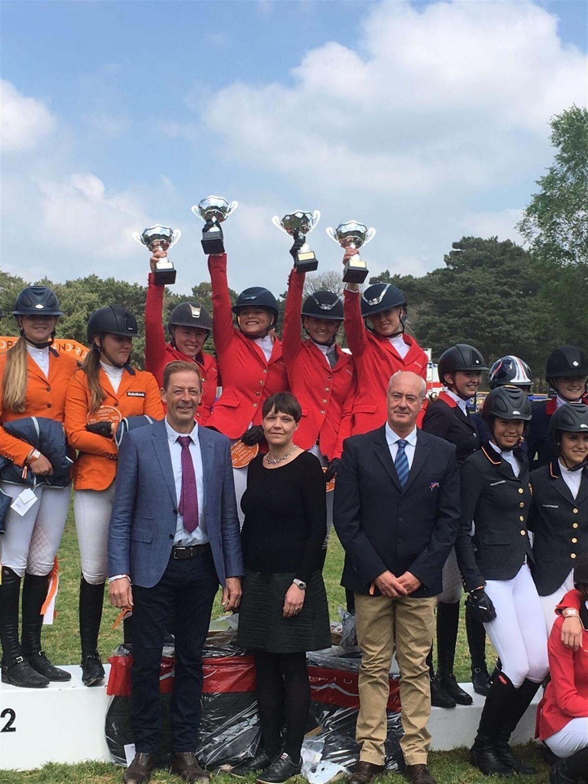 Fredag var de danske Juniorryttere på banen ved Nations Cup 140 cm i Fontainebleau i Frankrig. Som eneste hold med nul fejl blev det til en stensikker sejr til de danske hold og dannebro røg til tops. Det danske hold der med landholdstræner Bo K. Møller i front bestod af Clara Hallundbæk med Dakar e. Utrillo van de Heffinck/Darco, Helena Skare Ville på Atlantico e. Acord II/Landadel, Benedikte Rie Truelsen og Cassina Z e. Cassini I/Voltaire og Josephine Bøgh med Van Dejk e. Verdi/Emillion .
