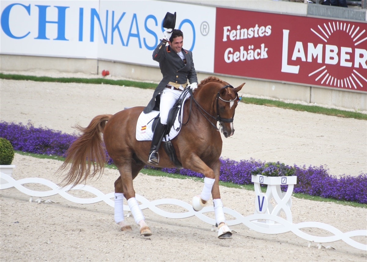 Men både G.P.Specialen men især Kürens store overraskelse blev spanske Severo Jurado Lopez med den meget dynamiske Lorenzo som til publikums jubel opnåede 83,350%hvilket placerede ham på en fjerdeplads. Og mon ikke også det betød en plads på det spanske hold? Severo er jo til daglig berider hos Helgstrand Dressage, og derfor en lille smule dansk, så vi kan alle glæde os sammen med ham over hans flotte resultater i Aachen