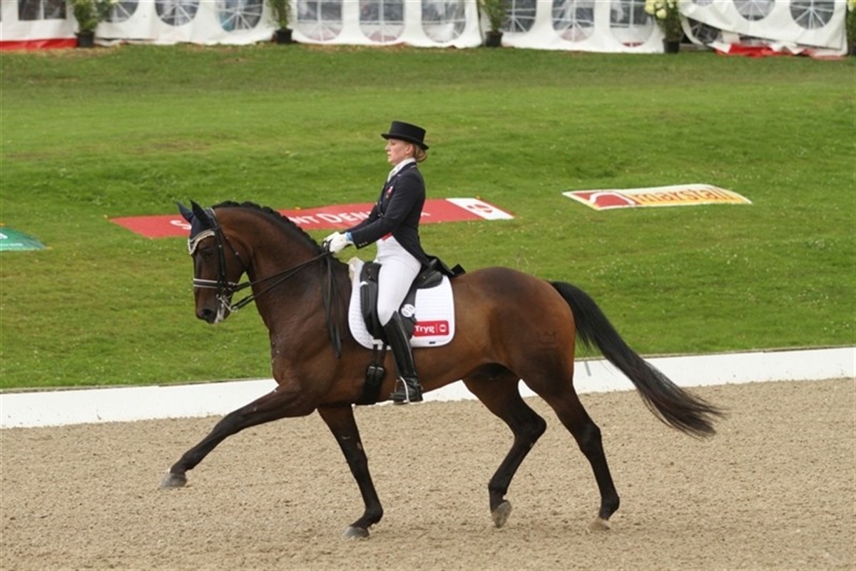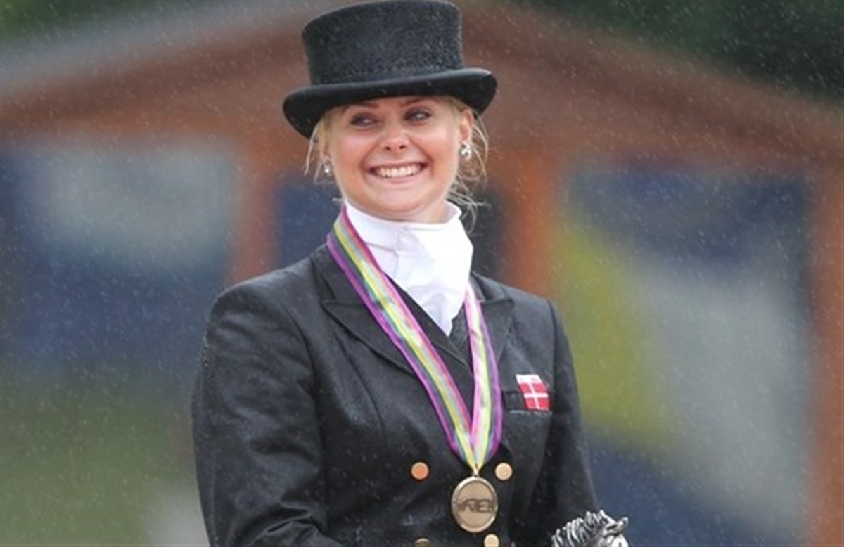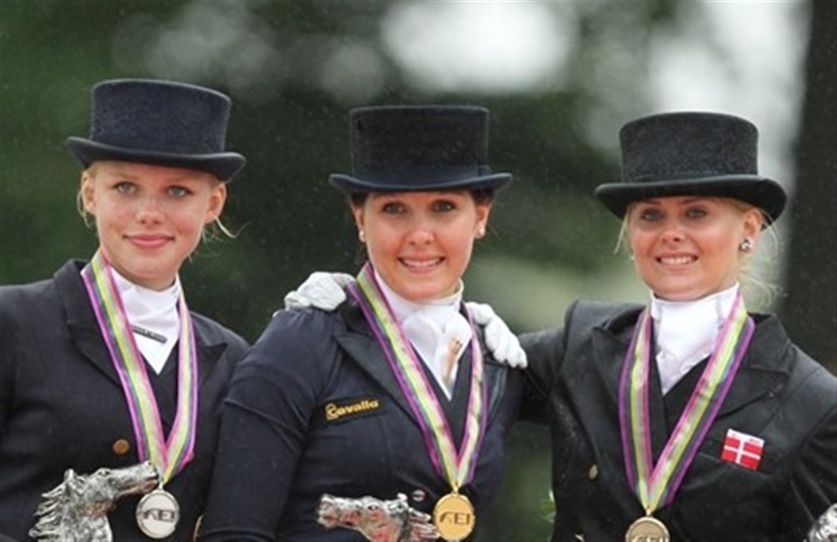De to tyske ryttere Vivien Niemann og Pia-Katharina Voigtländer indtog guld og sølv pladsen i den individuelle juniorkonkurrence ved EM på Broholm i dag. Det lykkedes for danske Anna Zibrandtsen at fastholde sin tredjeplads, men hun var blot 0,3 procentpoints fra sølvmedaljen. Anna har redet springning og military på M-niveau, men hun har altid haft en forkærlighed for dressurarbejdet. - Jeg var ikke særlig god som springrytter, så jeg besluttede at koncenterer mig om dressurdisciplinen for det er min passion. I Jan Brink har jeg fået en træner, hvis kemi passer perfekt til mig. Jeg kom til ham i februar i år, og på den korte tid har han udført mirakler med mig og min hest, fortæller hun. Det lå lidt i kortene at Nanna Skodborg Merrald og elegante Millibar skulle gå ind i topkampen i dag. Deres travprogram var helt i særklasse med procenter på 76-77 - betagende smukt og præcist. I skridt faldt procenterne desværre, og i galopprogrammet fik Nanna ikke helt det flotte udtryk frem i Millibar, en kostbar overgang fra den frie galop kiksede for parret, og pointene raslede ned. Nanna sluttede på en delt 4. plads med 72,0% Kathrine Sumborg Christensen viste Rohmario flot frem i dag, med bedre flow og overblik, nerverne var mere i ro på 15-årige Kathrine, og hun red sig ind på 13. pladsen og derme ind i morgendagens kürfinale. Nanna Bronnée Madsen og Skjoldsgaard Monte-Vo var ikke helt i sjus i dag, som det var tilfældet i holdkonkurrencen og de sluttede på 17. pladsen med 67,868%