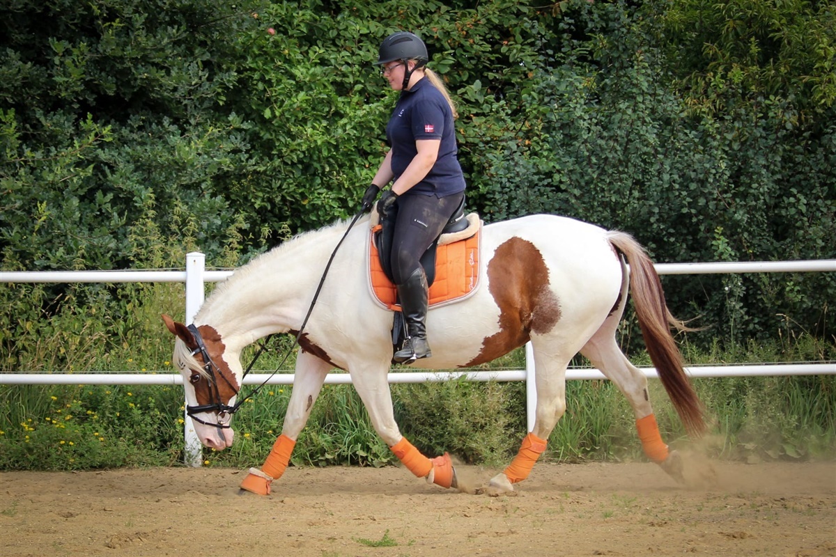 Den 13. november 2019 blev Corina til Carolines første hest og lykken var stor. Caroline fik hurtigt arrangeret smed, dyrlæge og kiropraktor til Corina, og de gik igang med en intensiv slankekur. Her et år efter har de været ude og starte flere mindre dressurstævner, og Corina er en helt anden ridehest i dag, fortæller Caroline.