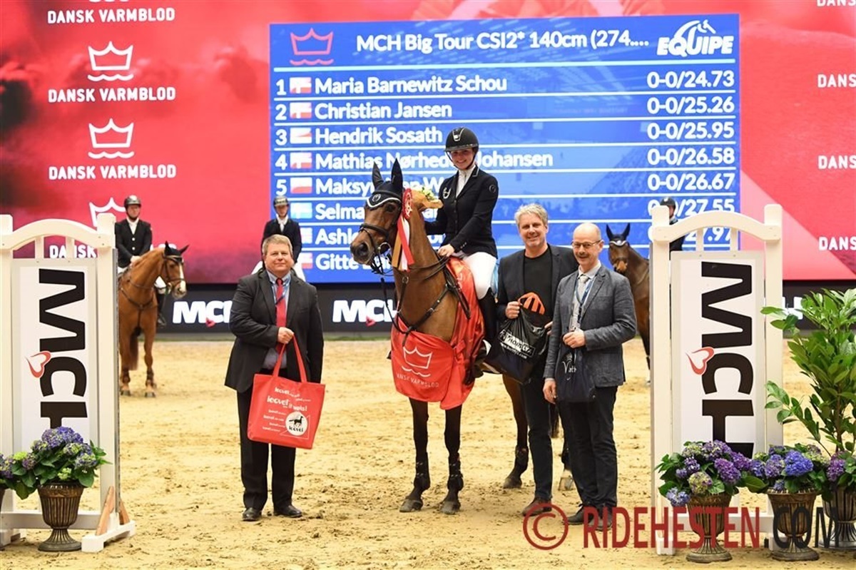 Med den velspringende 13-årige hoppe Seana 2 e. Stolzenberg lykkedes det for Maria Barnewitz Schou at ride allerhurtigst i CSI2* 140 cm klassen i Jyske Bank Boxen her på første dagen ved Dansk Varmblods Hingstekåring.