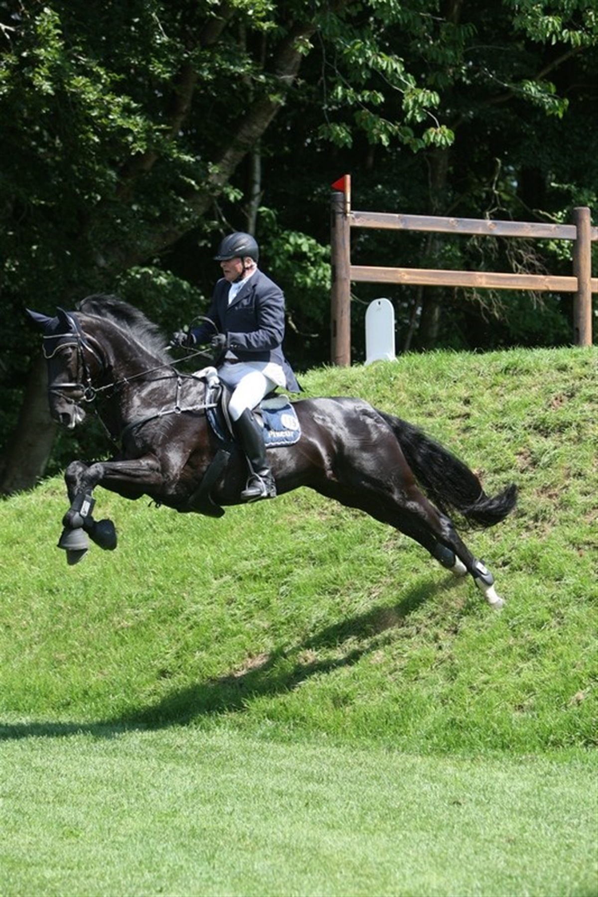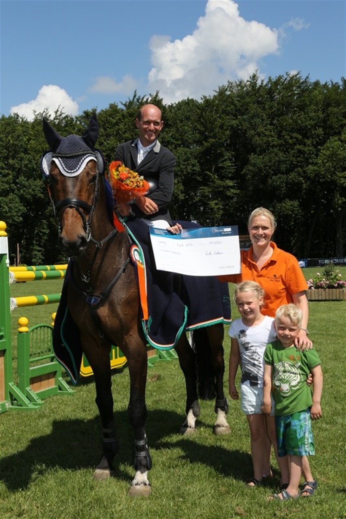 Solen strålede over den smukke græsbane på Bækgaarden, der i dag dannede rammerne og Askeland Derby 2012. 21 ekvipager var til start i klassen, og som det er tradition på en derbybane, blev rytterne og hestene budt på lidt "ekstra"! Udover banket og Achnergrav skulle rytterne undervejs igennem banen også ride væk fra græsbane, og springe ind på den store Walber Arena med sandbund, og her springe bl.a. vandgrav og dobbeltspring, og derefter springer ud af banen igen, for at vende tilbage til græsbanen. Herudover skulle der holdes et højt tempo - ca. 400 m/minut rundt på den godt 1000 m lange derbybane. Tre ekvipager formåede at ride banen uden fejl på forhindringerne, nemlig Søren Knudsen på Shivas Regal, Andreas Schou på Lorca V og Torben Frandsen på Linaro. Søren Knudsen måtte dog indkassere 6 fejl på tid, og derfor var det reelt kun Torben Frandsen og Andreas Schou, der stod noteret for 0 fejl efter hovedrunden. Det betød at Askeland Derby 2012 skulle afgøres i en omspringning, og her var Andreas Schou første mand på banen. Det blev til 4 fejl, og Torben Frandsen skulle derfor blot holde 0'et for at vinde klassen - det gjorde han, og dermed var sejren i hus. Torben Frandsen blev nr. 3 på Wallace, der kom igennem banen med 4 fejl, og nummer 4 på It's Catweazle, der ligeledes klarede banen med 4 fejl. Nr. 5 blev Victor Lica Larsen på Luigi. Udover derbyklassen, blev der bl.a. også afviklet en S-ponyklasse, som blev vundet af Emil Hallundbæk på Pauldarys Pocket Rocket efter en omspringning mod Jessica Toelstang på Nikolina. Nr. 3 i klassen blev Clara Hallundbæk på Beigh Castle. TV2 | Østjylland var forbi stævnet på Bækgården i dag, og talte bl.a. med Lise Thørgersen, der er en af hovedkræfterne bag stævnet - se indslaget herunder. Se samtlige resultater fra stævnet via link til højre.