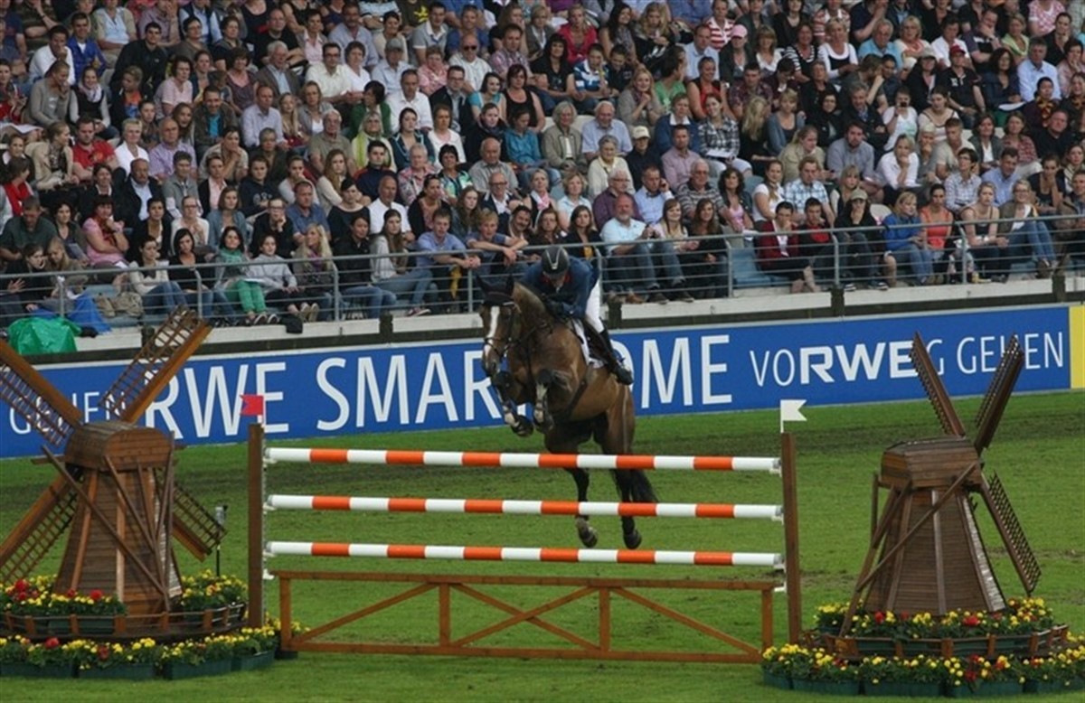 Fem dicipliner ridesport overværes i løbet af næsten to uger af 350.000 tilskuere, hvoraf mange samles på det enorme stadion, hvor springnigklasserne afvikles, og således foregik aftenens nationsspringning for stuvende fulde tribuner. Mens tyskerne lagde hårdt ud med to fejlfrie gennemridninger, så halede franskmændene raskt ind på værtslandet - ikke mindst i kraft af superridende Pénélope Leprevost med Mylord Carthago. Det sejrende franske hold vandt intet mindre end 72.000 euro, men tyskerne tog andenpladsen og en check på 44.000 euro og irerne besatte tredjepladsen, der sikrede dem 34.000 euro.