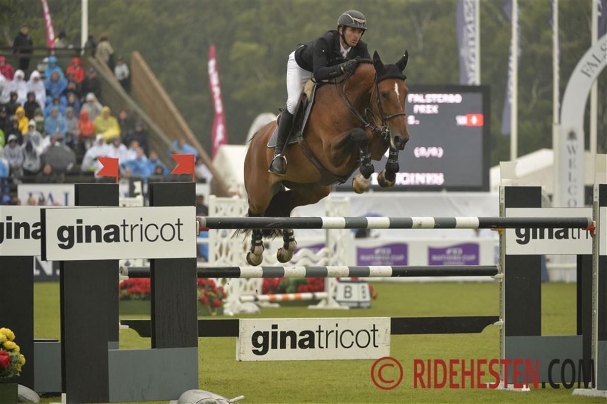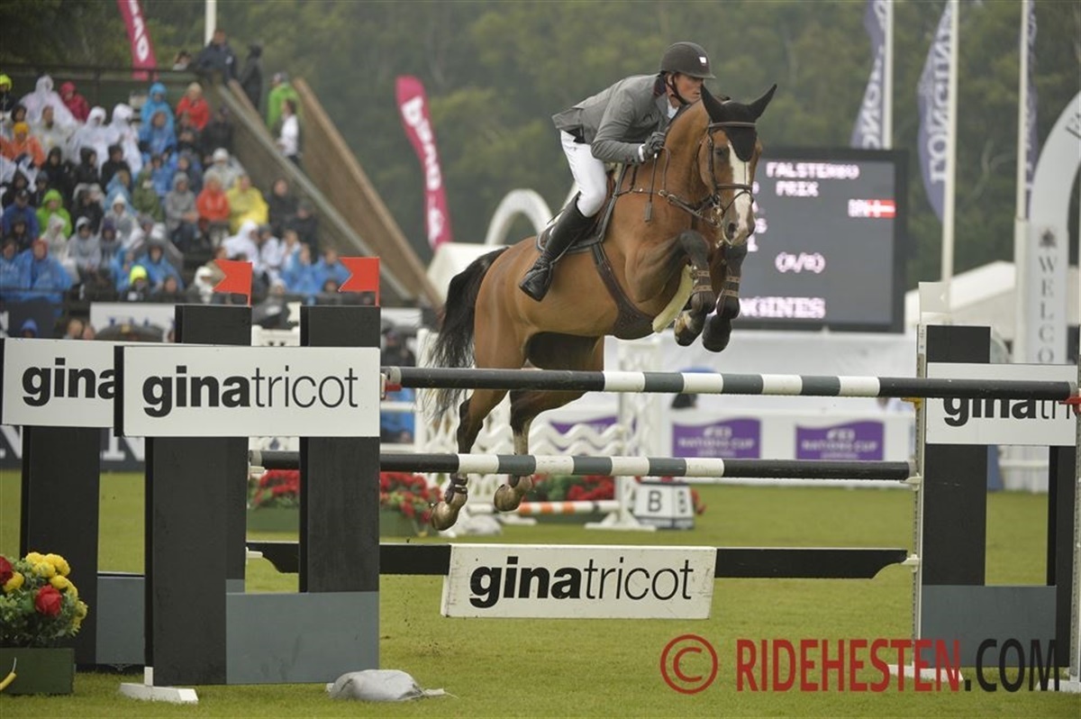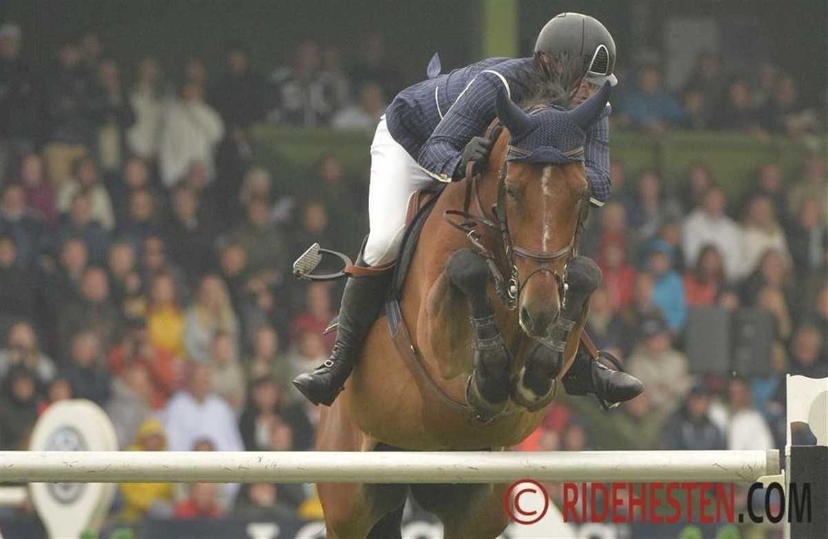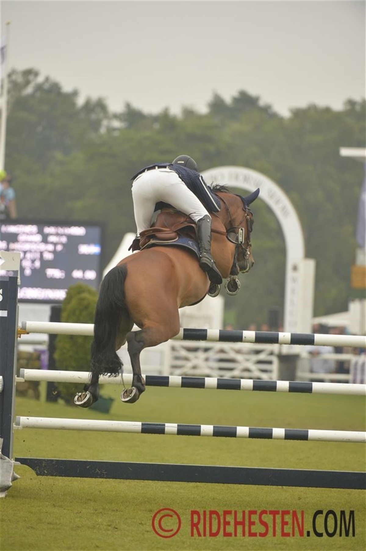 Peder Fredricsons OL-sølvvinder H&M All In måtte opereres i foråret, så det var dejligt at gense hesten i absolut topform, ja næsten for meget form, for på udspringet af dobbeltspringet skød All In næsten Peter ud af sadlen, han blev hængende, måtte lige bruge et par galopspring til at genvinde balancen, men den højre stigbøjle fandt han aldrig igen, og han måtte ride de sidste tre forhindringer med kun en bøjle. Han stoppede tiden 0,46 sekunder efter Guerdat.