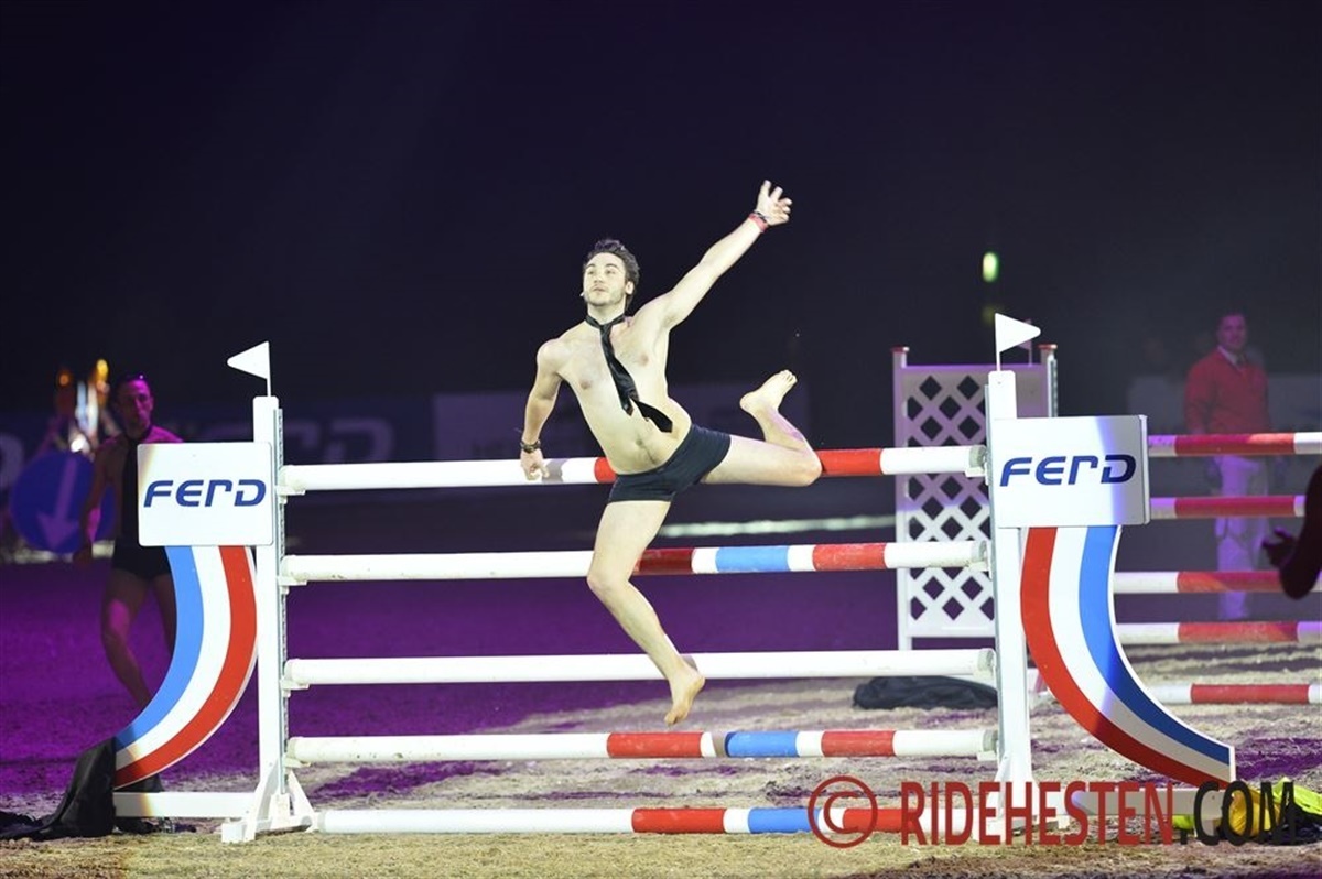 Det hele blev åbnet af fire ryttere og heste fra Blue Hors, så kom Wafande på banen sammen med tre ryttere: Maria Anita Andersen, Alexandra Andresen og Michael Søgaard - det fik publikum op af stolene, så var vi ligesom igang. Slag i slag fulgte stemningsfulde shows, halvnøgne mænd "The Horse Man Team" der sprang kæmpestore forhindringer.