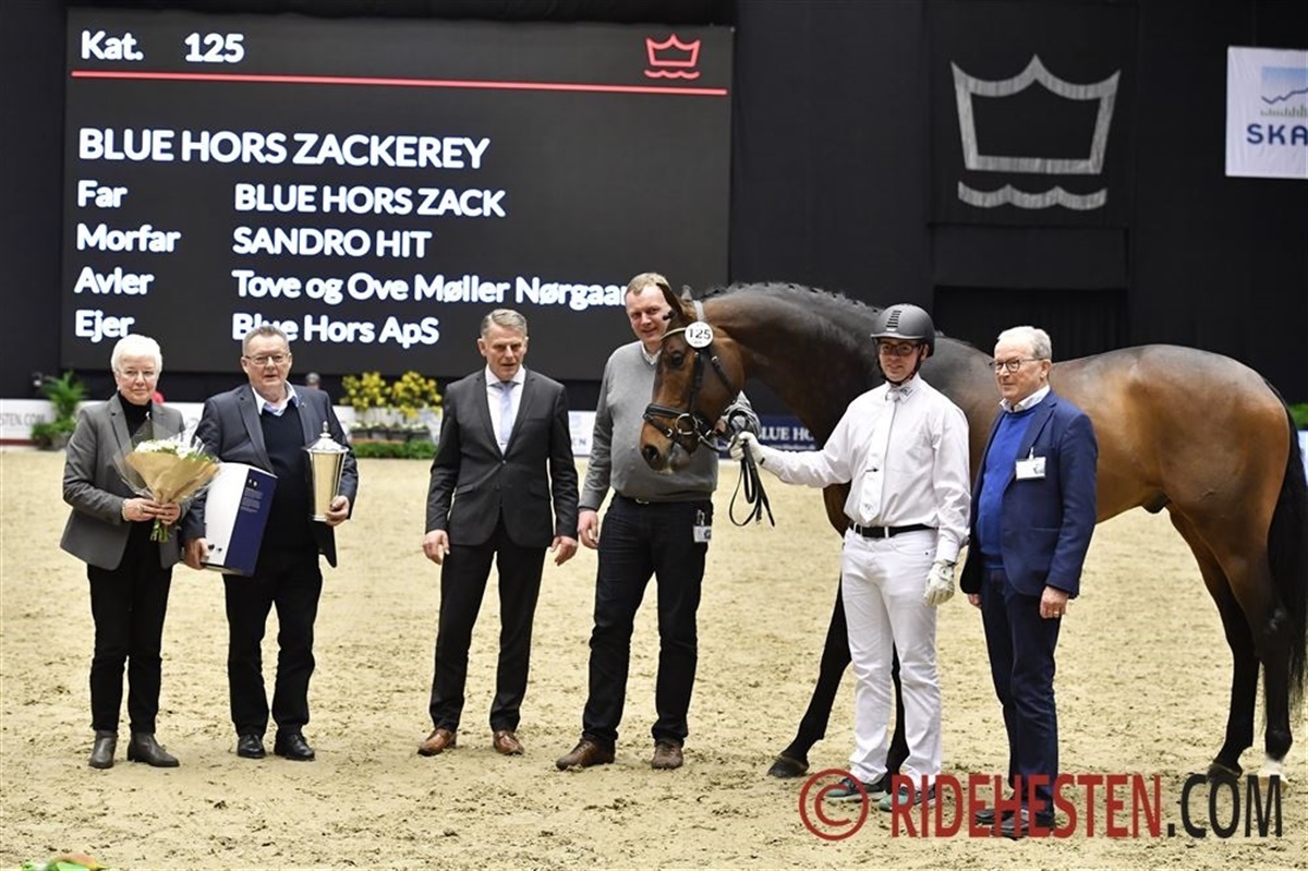 Og så blev det naturligvis Dansk Varmblods nye guldmedaljehingst Blue Hors Zackerey, som fik Aage Ravns Vandrepokal i det gangartsbetonede hold af 4-årige hingste. Vandrepokalen blev givet til opdrætterne Tove og Ove Møller Nørgaard.