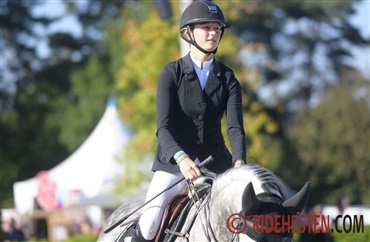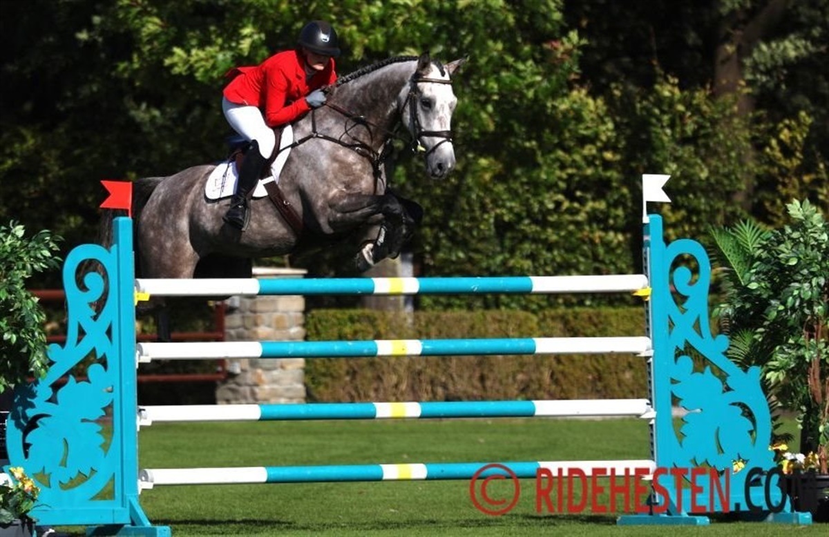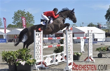 Frida sidder på Kirkelodgaards Ci Ci Chopin DWB (DWB betyder hesten er købt på Dansk Varmblods Elitefølauktion) efter Ci Ci Senjor Ask/Casir Ask (opdr. Charlotte Schiøler) og de fik 8 fejl på den svære bane.