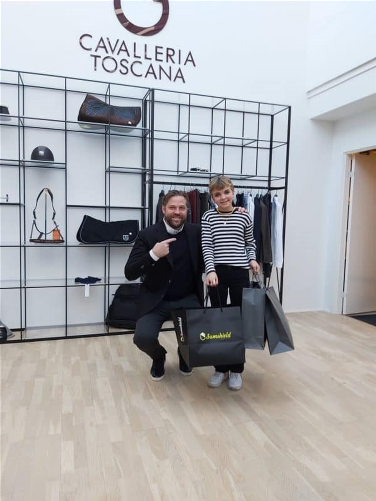 Frida besøgte blandt andet Trolle Company, som sælger kvalitetsrideudstyr til hest og rytter. Her fik Frida lov til at vælge sin helt egen ridehjelm, og derfra startede en sand gaveregn af lækkert rideudstyr til en meget glad ung pige.